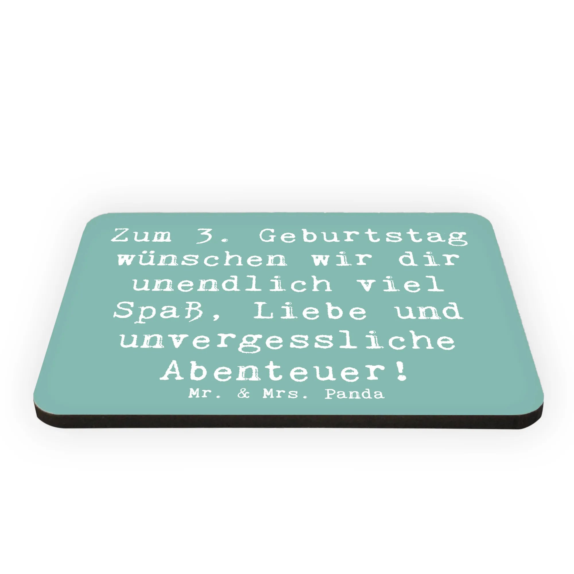 Der Kühlschrankmagnet "Zum 3. Geburtstag wünschen wir dir unendlich viel Spaß, Liebe und unvergessliche Abenteuer!" von Mr. & Mrs. Panda ist das perfekte Geschenk für den dreijährigen Rabauken oder die kleine Prinzessin, die gerade ihren dritten Geburtstag feiert. Dieser farbenfrohe und supermagnetische Magnet ist nicht nur praktisch, sondern auch eine wunderbare Deko-Idee für den Kühlschrank oder das Whiteboard.