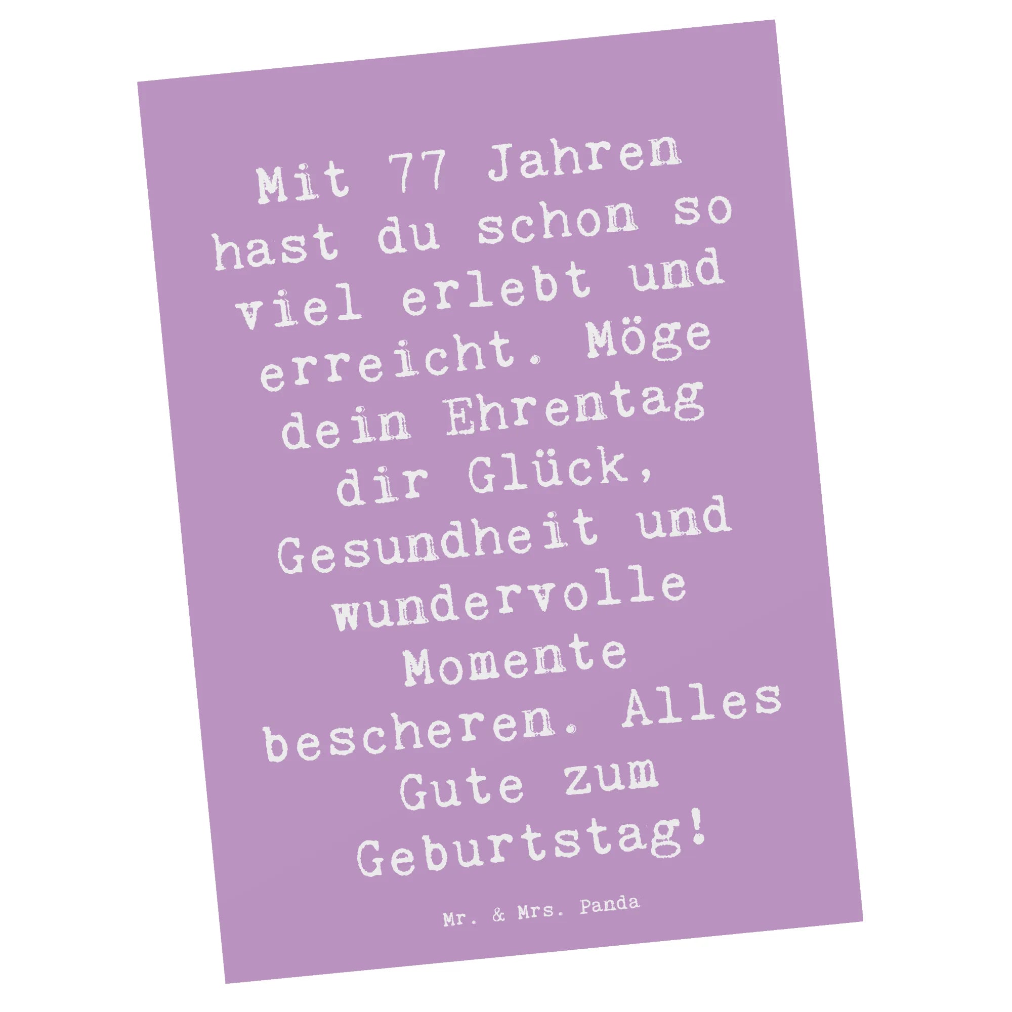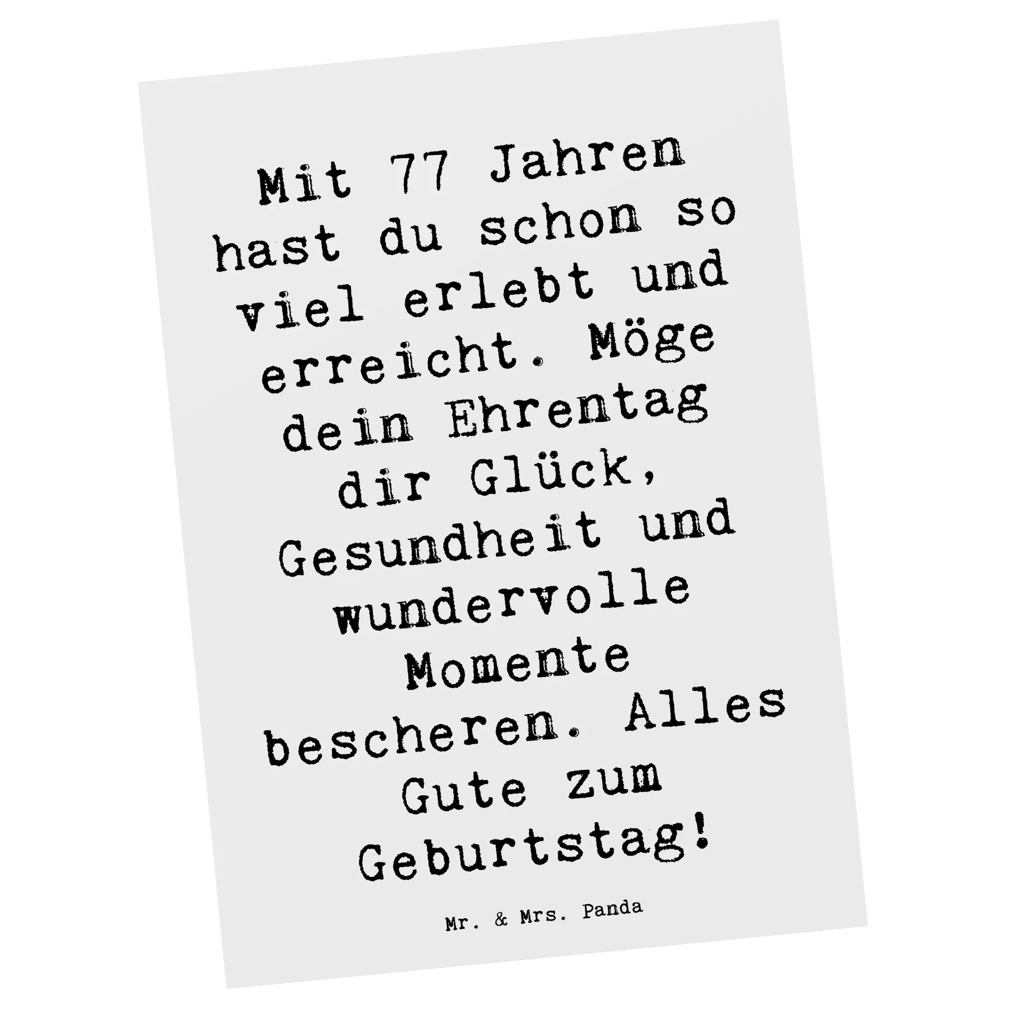 Postkarte Spruch 77. Geburtstag Glückwunsch – Mr. & Mrs. Panda