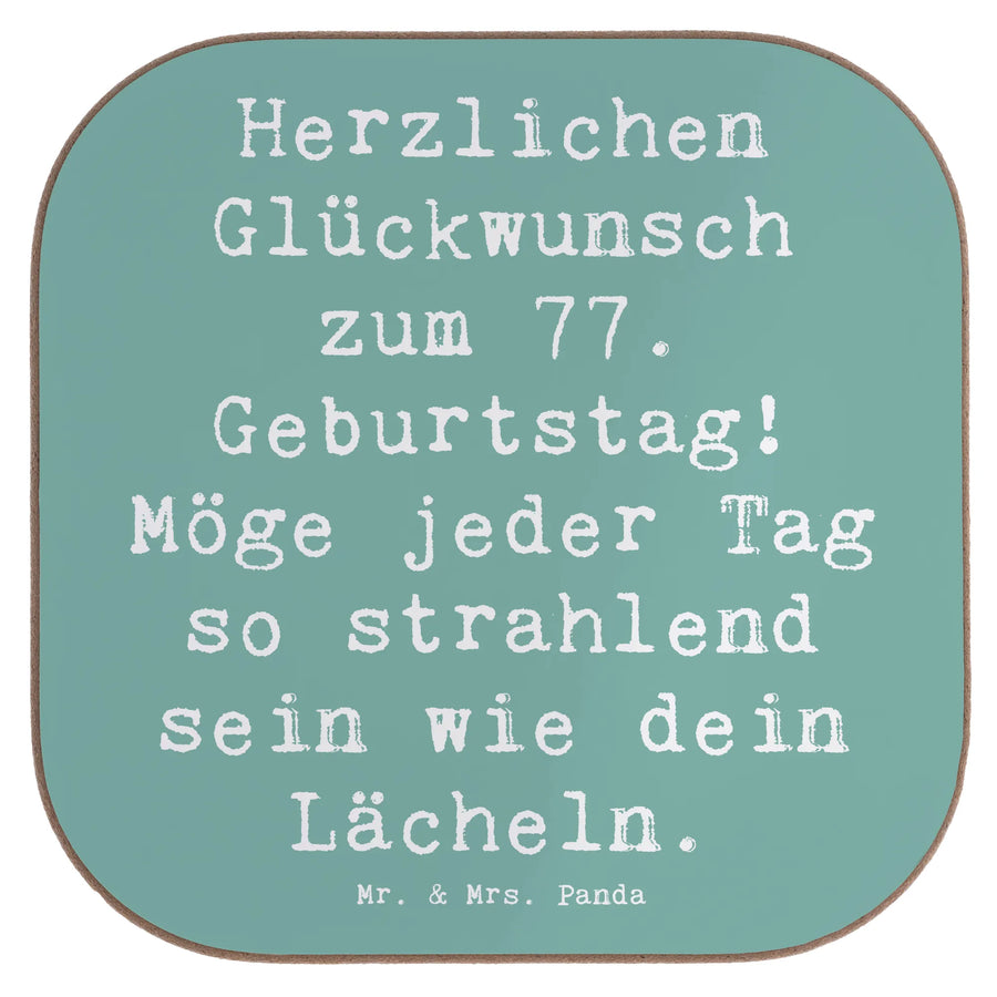 Untersetzer Spruch 77. Geburtstag Strahlen – Mr. & Mrs. Panda
