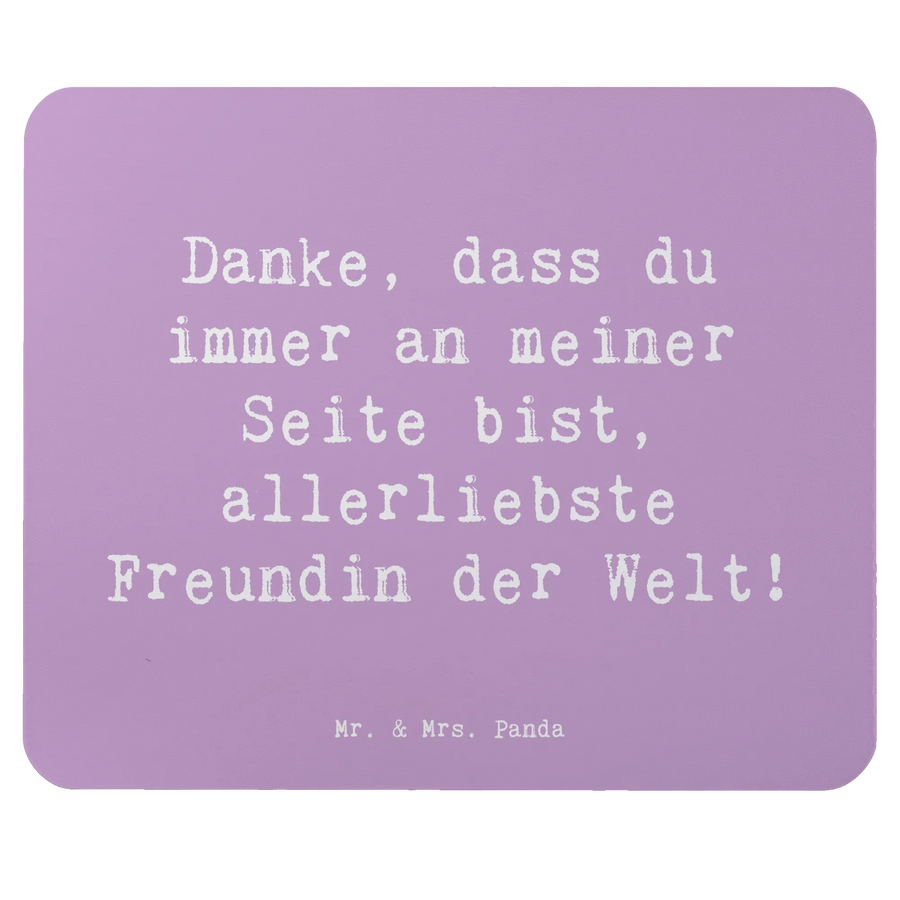Das perfekte Geschenk für die beste Freundin? Das Mauspad von Mr. & Mrs. Panda mit dem liebevollen Spruch "Danke, dass du immer an meiner Seite bist, allerliebste Freundin der Welt!" ist genau das, was du suchst!
