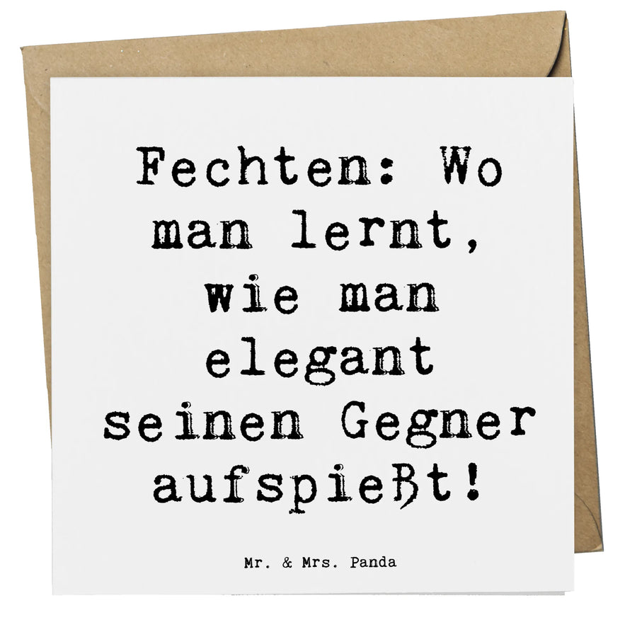 Die Deluxe Karte Fechten von Mr. & Mrs. Panda ist das perfekte Geschenk für alle Sportbegeisterten und Fechtliebhaber! Mit ihrem witzigen Spruch "Fechten: Wo man lernt, wie man elegant seinen Gegner aufspießt!" bringt sie ein Lächeln auf die Gesichter.