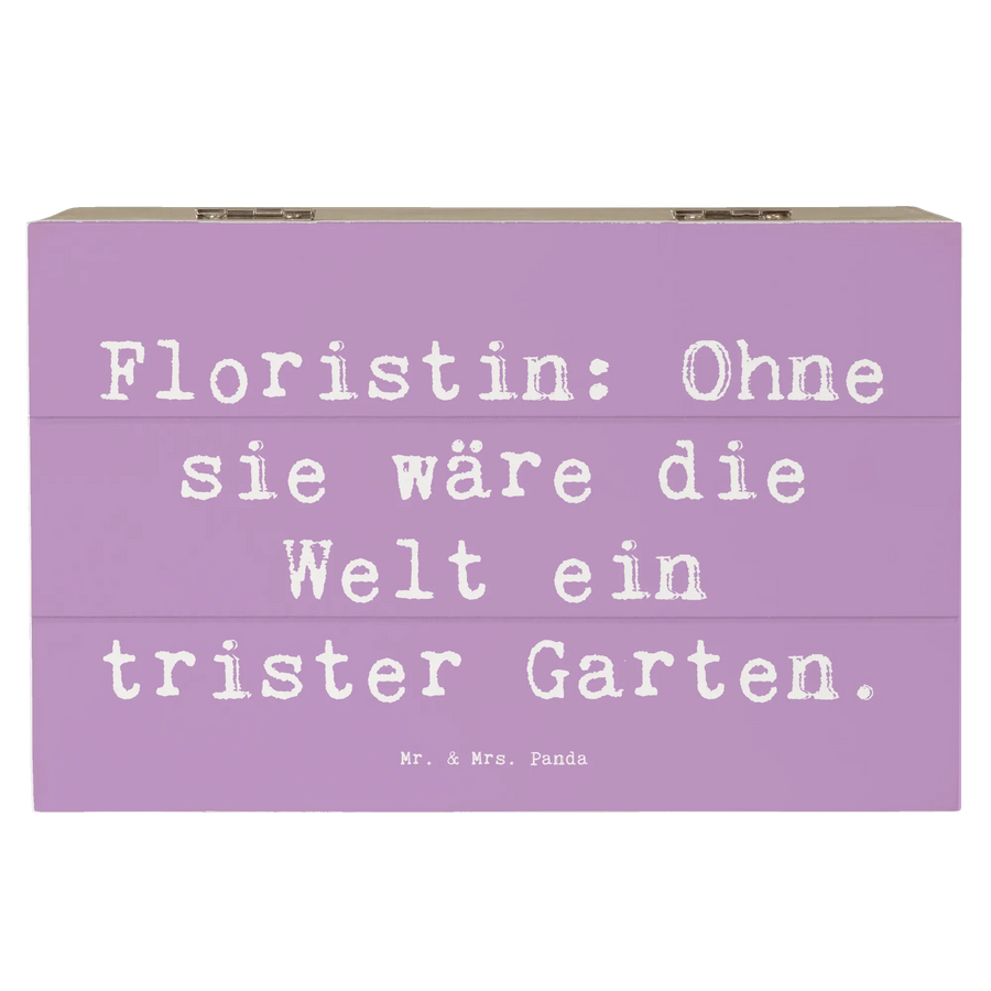 Die wunderschöne Holzkiste von Mr. & Mrs. Panda ist das perfekte Geschenk für Floristen und alle Blumenliebhaber. Mit dem bezaubernden Spruch "Floristin: Ohne sie wäre die Welt ein trister Garten." bringt diese Kiste nicht nur Freude, sondern auch die Wertschätzung für den Beruf der Floristin zum Ausdruck.