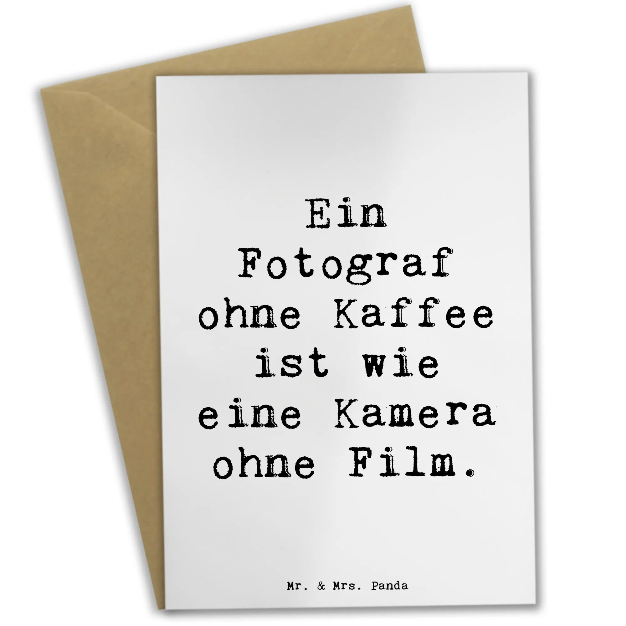 Die Grußkarte "Fotograf" aus der liebevoll gestalteten Berufe-Kollektion von Mr. & Mrs. Panda ist das perfekte Geschenk für alle Hobbyfotografen und Profis, die in ihrer Leidenschaft für das Fotografieren erblühen. Mit dem originellen Spruch "Ein Fotograf ohne Kaffee ist wie eine Kamera ohne Film" sorgt diese Karte für ein Schmunzeln und bringt jeden Fotografen zum Lächeln.