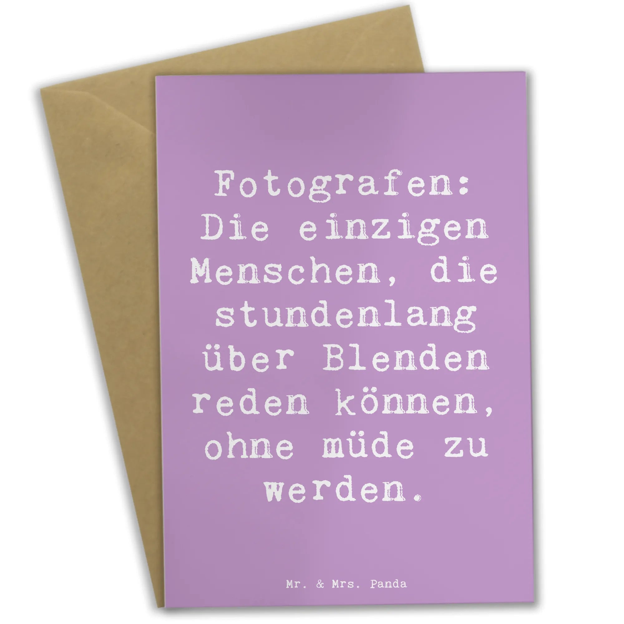 Du suchst nach einer besonderen Grußkarte für einen Fotografen? Dann ist die liebevoll gestaltete Grußkarte von Mr. & Mrs. Panda genau das Richtige für Dich! Mit einem tollen Spruch, der sagt: 'Fotografen: Die einzigen Menschen, die stundenlang über Blenden reden können, ohne müde zu werden', bringt diese Karte ein Lächeln auf die Gesichter aller Fotografie-Begeisterten.
