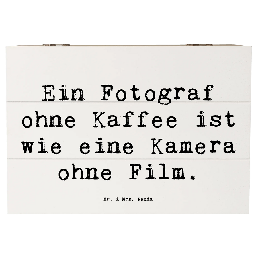 Die Holzkiste Fotograf aus der Kollektion Berufe von Mr. & Mrs. Panda ist das perfekte Geschenk für jeden, der sein kreatives Schaffen liebt und Wert auf liebevolle Details legt. Diese wunderschöne Kiste mit dem Spruch 'Ein Fotograf ohne Kaffee ist wie eine Kamera ohne Film.' ist mehr als nur eine Aufbewahrungsbox; sie ist ein echtes Highlight in jedem Raum!
