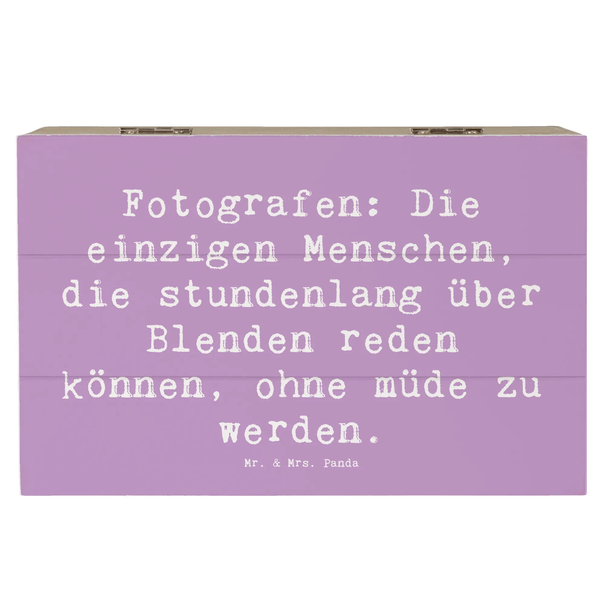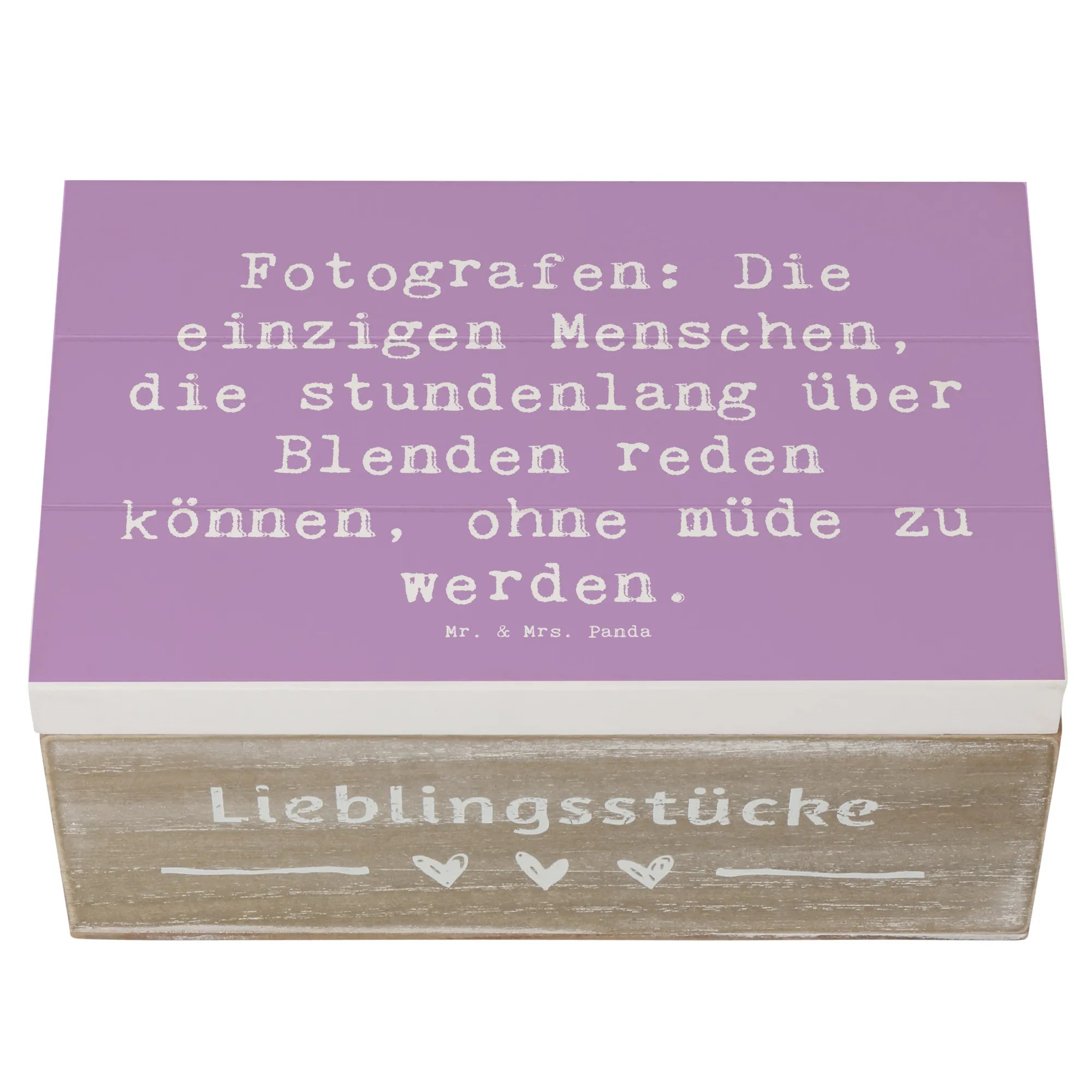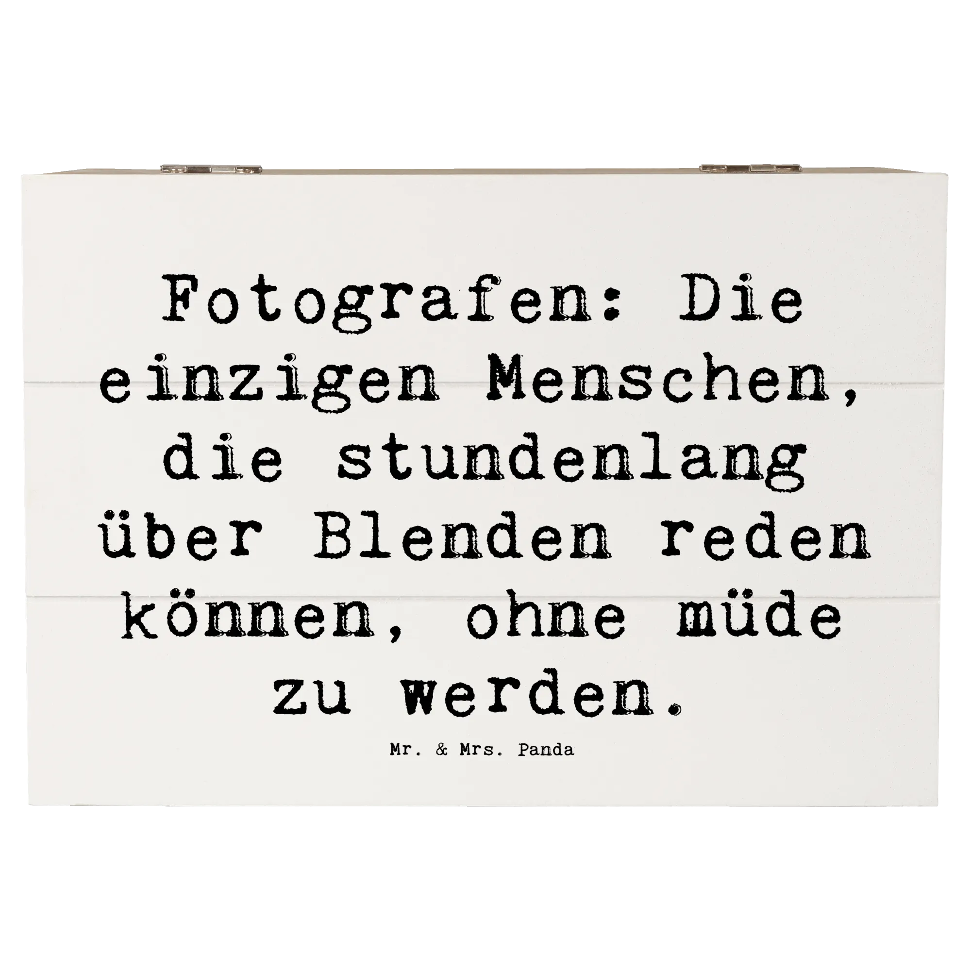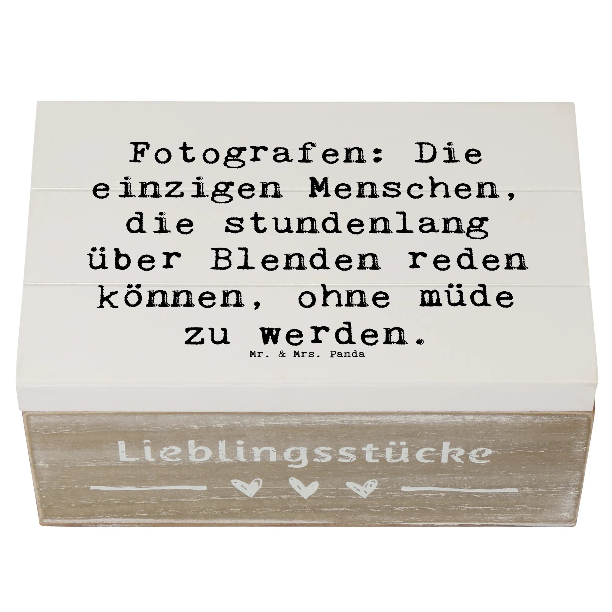 Diese wunderschöne Holzkiste von Mr. & Mrs. Panda ist der perfekte Begleiter für Fotografen oder Fotografie-Enthusiasten. Mit dem liebevollen Motiv 'Fotografen: Die einzigen Menschen, die stundenlang über Blenden reden können, ohne müde zu werden' bietet diese Kiste nicht nur eine stilvolle Aufbewahrung, sondern auch ein süßes Statement über die Leidenschaft hinter der Linse.