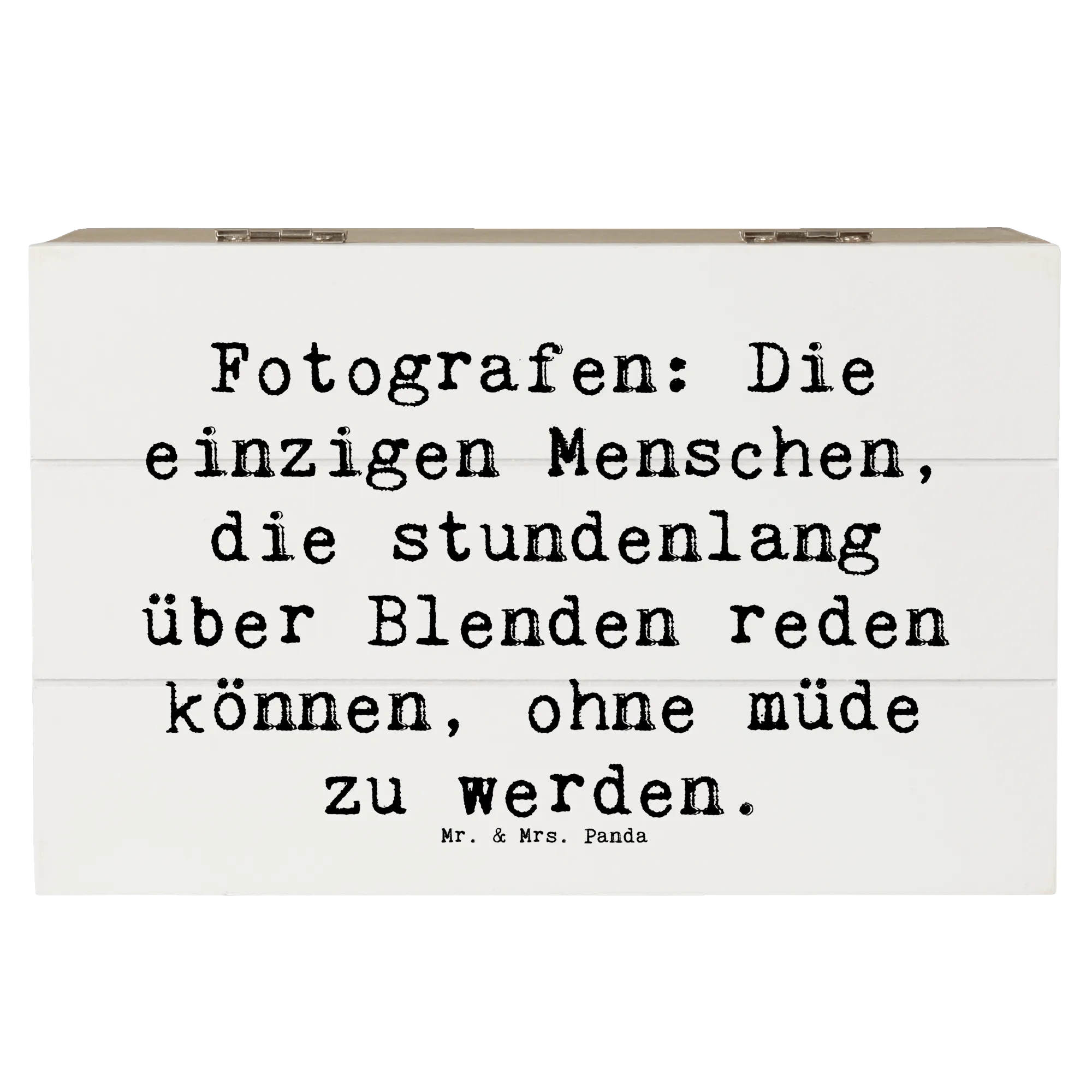 Holzkiste Spruch Fotografen: Die einzigen Menschen, die stundenlang über Blenden reden können, ohne müde zu werden. - 25 x 18 cm - Weiß
