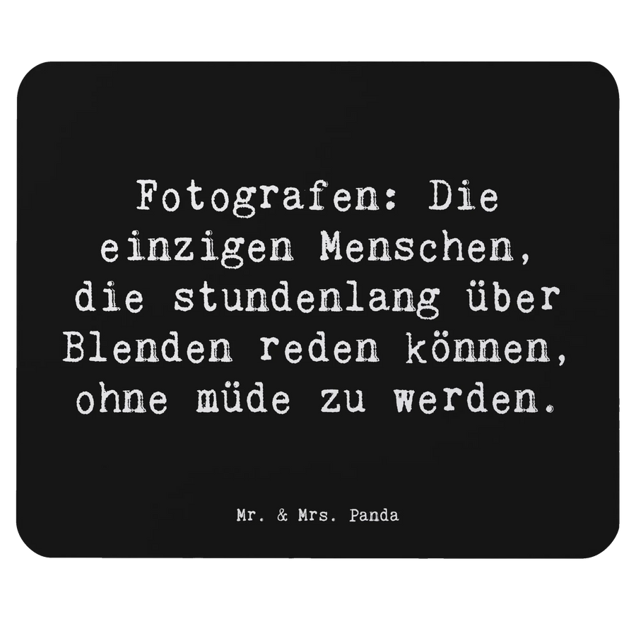 Suchst Du nach einem besonderen Geschenk für einen Fotografen oder einfach für Dich selbst? Dann ist unser Mauspad "Fotograf" aus der liebevollen Kollektion "Berufe" von Mr. & Mrs. Panda genau das Richtige! Mit dem humorvollen Spruch "Fotografen: Die einzigen Menschen, die stundenlang über Blenden reden können, ohne müde zu werden" wird dieses Mauspad nicht nur zum praktischen Helfer im Arbeitsalltag oder im Homeoffice, sondern auch zu einem echten Blickfang auf jedem Schreibtisch.