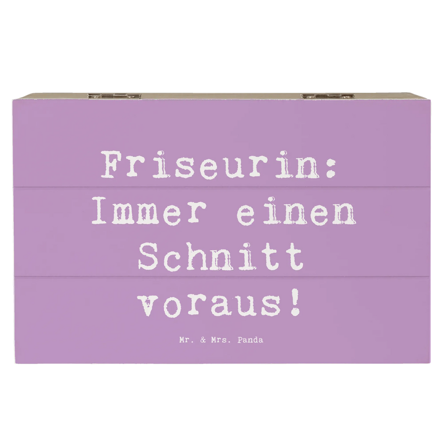 Die wunderbare Holzkiste "Friseurin: Immer einen Schnitt voraus!" von Mr. & Mrs. Panda ist das perfekte Geschenk für alle Friseurinnen und Friseure in Deinem Leben. Egal ob zur Einweihung eines neuen Salons, zum Geburtstag eines lieben Freundes oder einfach als kleine Aufmerksamkeit zwischendurch – diese Kiste ist eine charmante Möglichkeit, Wertschätzung zu zeigen!
