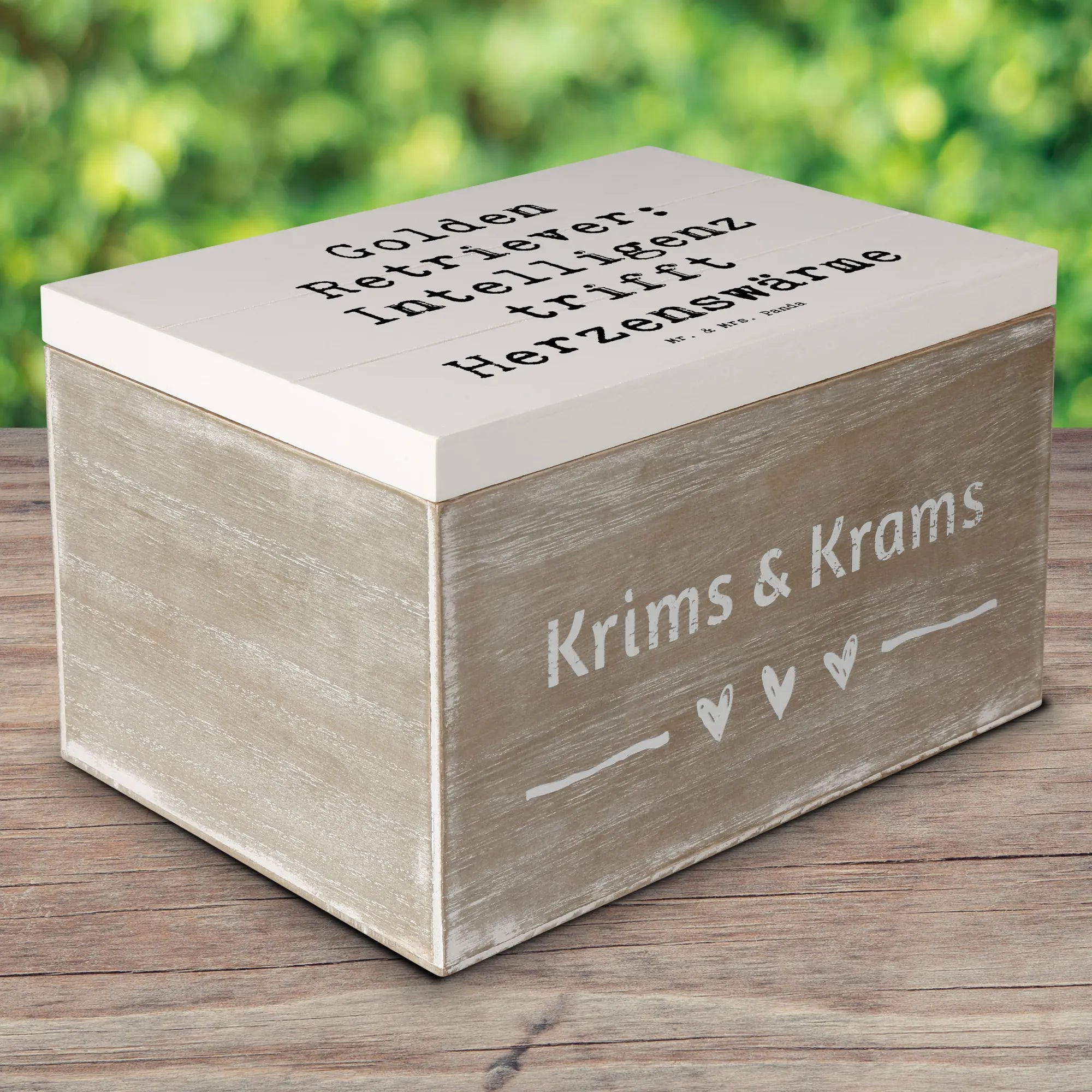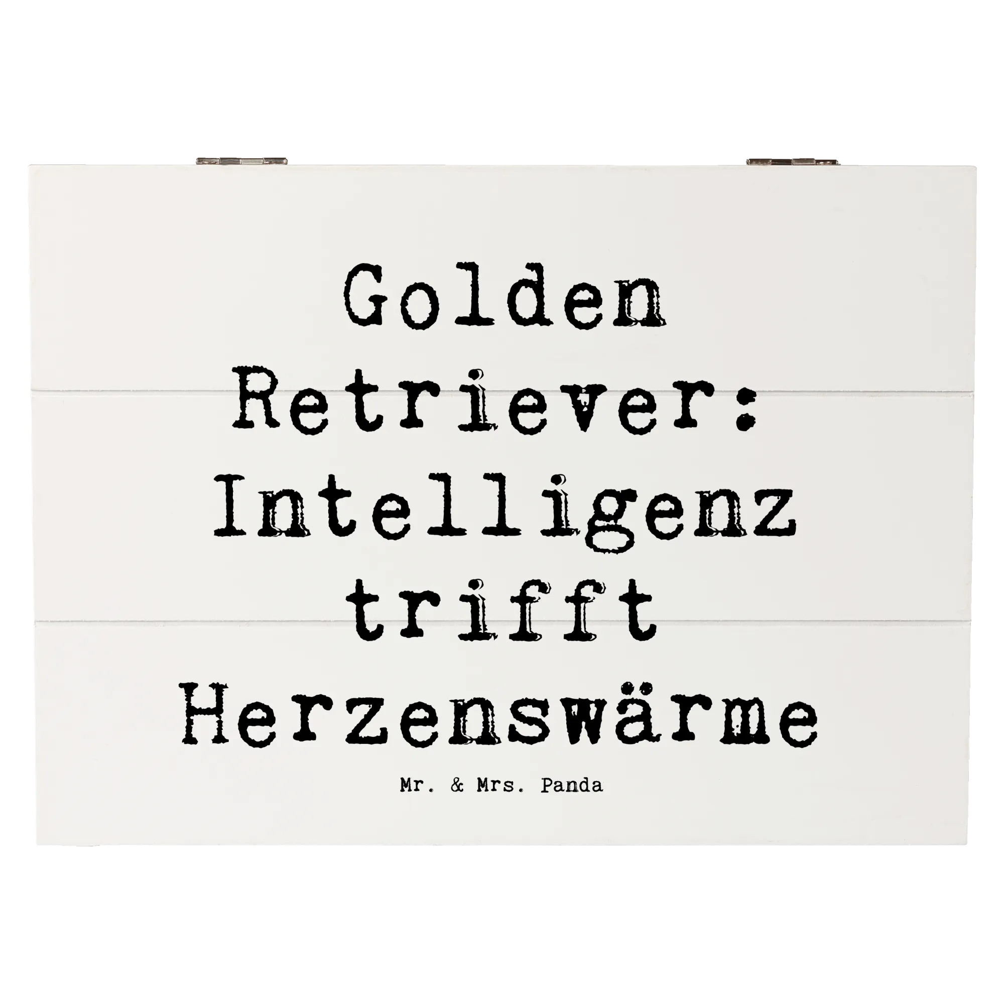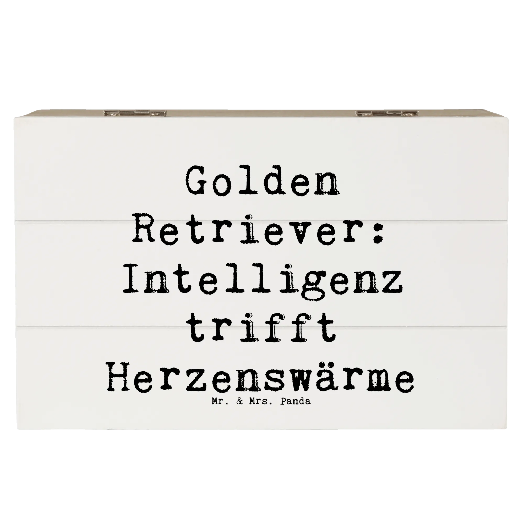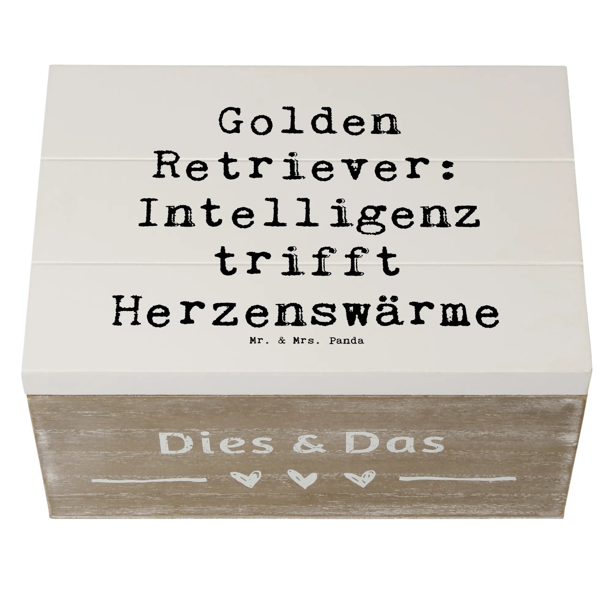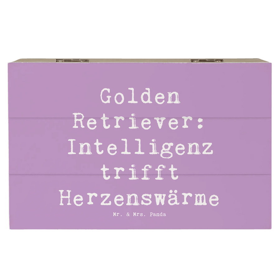 Die wundervolle Holzkiste von Mr. & Mrs. Panda ist das perfekte Geschenk für jeden Hundeliebhaber und insbesondere für Fans der treuen Hunderasse Golden Retriever. Mit dem Motto "Golden Retriever: Intelligenz trifft Herzenswärme" ist sie nicht nur dekorativ, sondern auch ein echter Hingucker in jedem Zuhause.