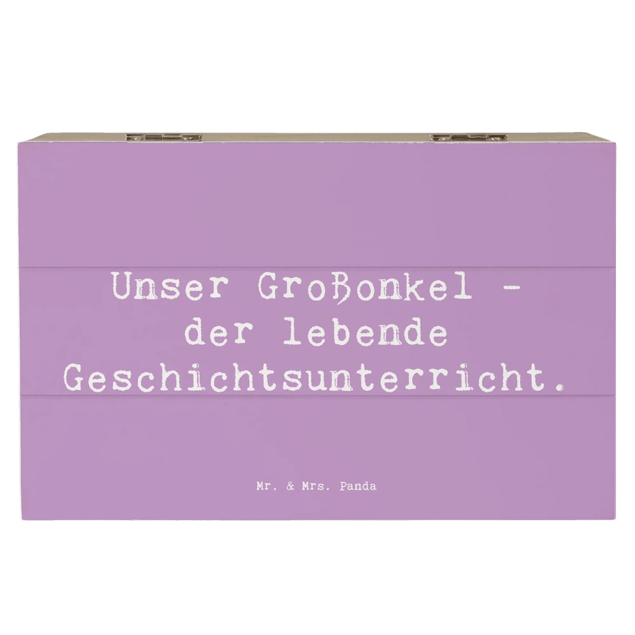 Die wunderschöne Holzkiste "Unser Großonkel - der lebende Geschichtsunterricht" von Mr. & Mrs. Panda ist das perfekte Geschenk für deinen Großonkel oder für jeden, der ihn besonders schätzt.