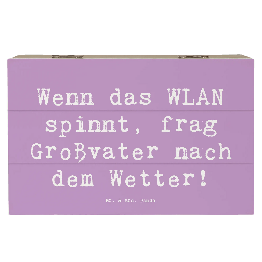 Mit dem liebevollen Spruch 'Wenn das WLAN spinnt, frag Großvater nach dem Wetter!' bringt die Kiste nicht nur zum Schmunzeln, sondern würdigt auch die wertvolle Rolle, die Großväter in unseren Leben einnehmen. Großväter sind die weisen Geschichtenerzähler, deren Geschichten Herz und Seele berühren.