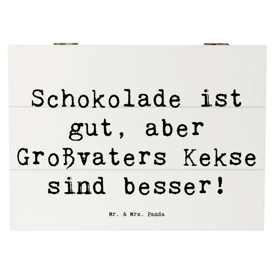 Die wunderschöne Holzkiste von Mr. & Mrs. Panda ist das perfekte Geschenk für deinen Großvater! Mit dem liebevollen Spruch "Schokolade ist gut, aber Großvaters Kekse sind besser!" bringt sie ein Lächeln auf sein Gesicht und erinnert ihn an die schönen Momente der gemeinsamen Zeit.