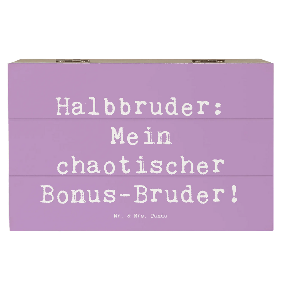 Die wunderschöne Holzkiste von Mr. & Mrs. Panda mit dem Motiv "Halbbruder: Mein chaotischer Bonus-Bruder!" ist das perfekte Geschenk für alle, die Familie und Geschwister lieben.