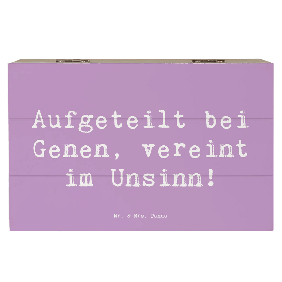 Die wunderschöne Holzkiste von Mr. & Mrs. Panda ist nicht nur ein praktischer Aufbewahrungsort, sondern auch ein einzigartiges Geschenk für Deinen Halbbruder oder Deine Halbgeschwister. Mit der liebevoll gestalteten Kiste, die den liebevollen Spruch „Aufgeteilt bei Genen, vereint im Unsinn!“ trägt, schaffst Du eine bleibende Erinnerung.