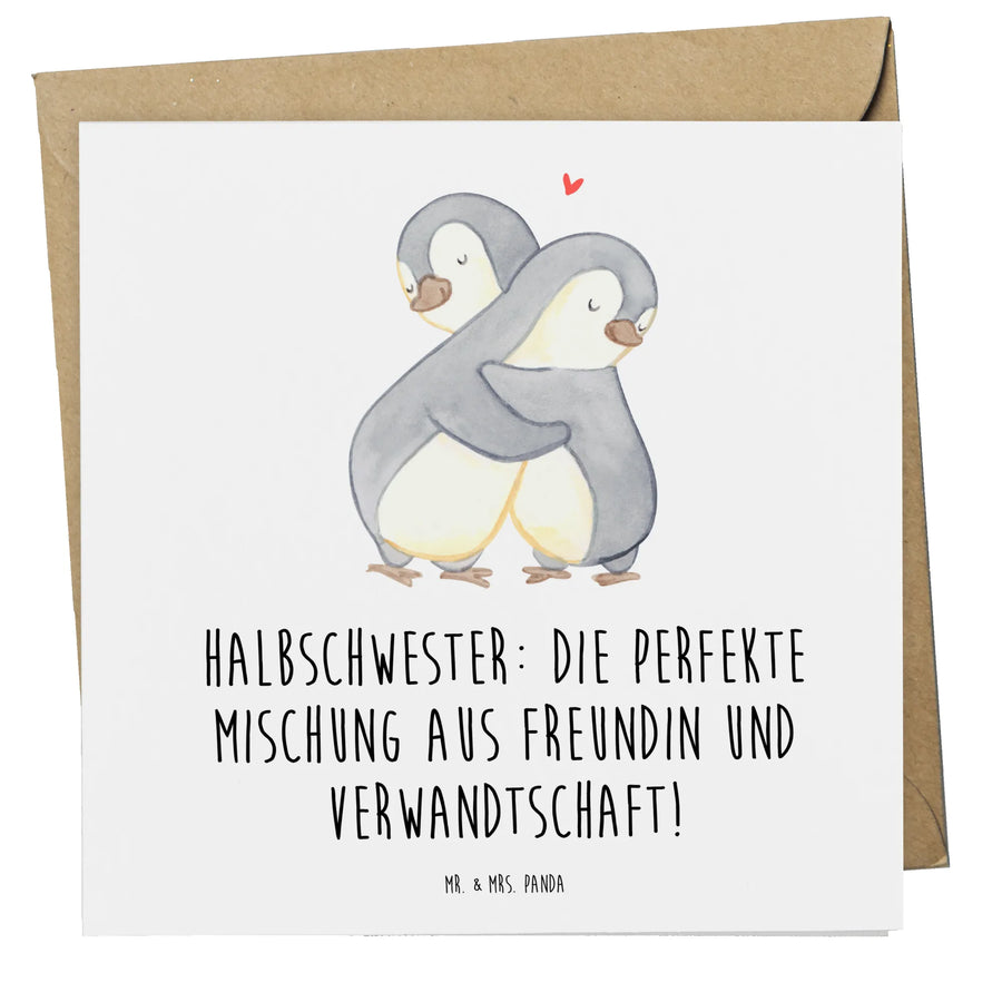 Überrasche deine Halbschwester mit dieser liebevoll gestalteten Deluxe Karte, die nicht nur qualitativ hochwertig ist, sondern auch eine tiefere Botschaft transportiert. Schenke Freude, Wertschätzung und ein ganz besonderes Stück Familiengefühl – mit der Halbschwester-Grußkarte von Mr. & Mrs. Panda.