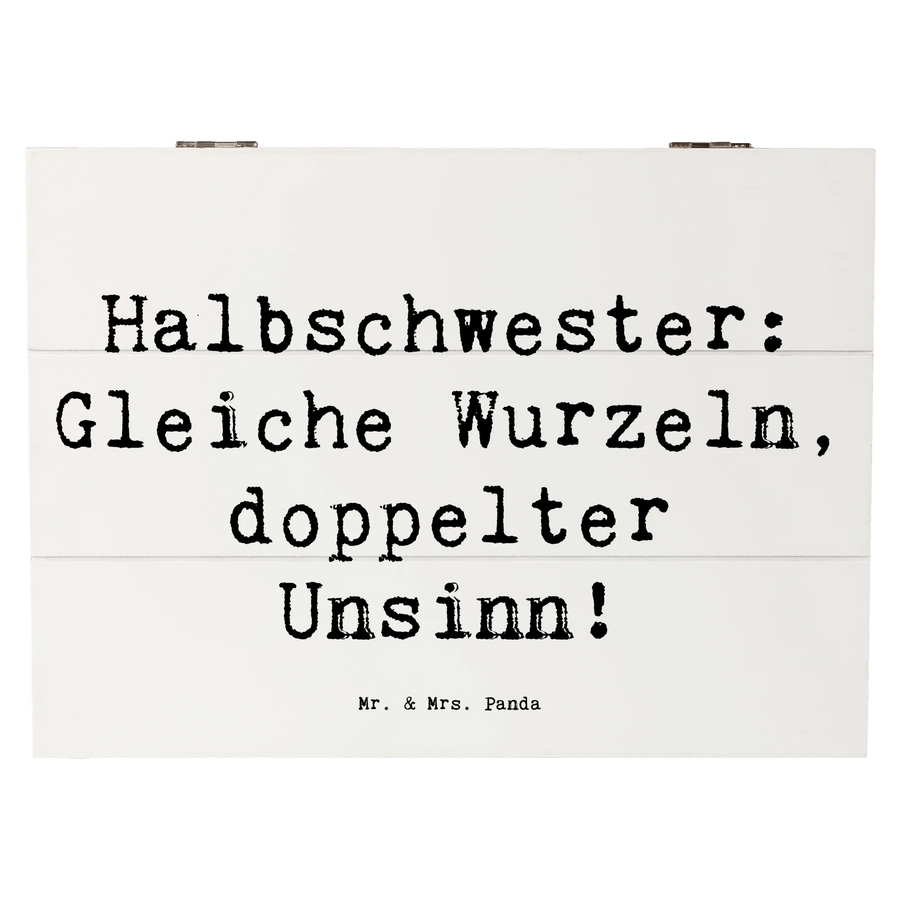 Die Holzkiste 'Halbschwester: Gleiche Wurzeln, doppelter Unsinn!' von Mr. & Mrs. Panda ist nicht nur ein multifunktionales Aufbewahrungselement, sondern auch ein liebevolles Geschenk, das die einzigartige Bindung zwischen Halbschwestern zelebriert.