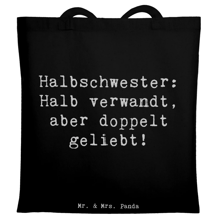 Eine Tragetasche mit Herz: Unsere Mr. & Mrs. Panda Tragetasche „Halbschwester“ bringt ein Lächeln in den Alltag. Mit dem liebevollen Spruch „Halbschwester: Halb verwandt, aber doppelt geliebt!“ ist sie das perfekte Geschenk für Deine Halbschwester oder für alle, die Familie neu denken. Ideal als Geschenk zum Geburtstag, als Dankeschön, zu Weihnachten oder einfach so.