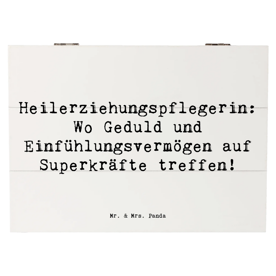 Entdecke die bezaubernde Holzkiste von Mr. & Mrs. Panda, die perfekt für alle Heilerziehungspflegerinnen ist! Diese wunderschöne Erinnerungskiste mit dem Spruch "Heilerziehungspflegerin: Wo Geduld und Einfühlungsvermögen auf Superkräfte treffen!" ist nicht nur ein Blickfang, sondern auch ein praktischer Aufbewahrungsort für all deine wertvollen Schätze. Egal ob für Fotos, kleine Erinnerungsstücke aus der Kindheit oder besondere Anlässe wie Kommunion und Konfirmation – diese Kiste bewahrt deine schönsten Erinnerungen stilvoll auf!