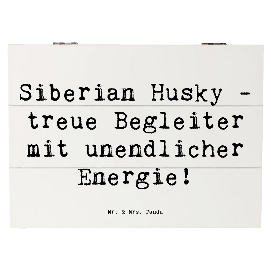 Das Tolle an dieser Kiste ist das bezaubernde Design! Der Siberian Husky strahlt Lebensfreude und Energie aus und der Spruch 'Siberian Husky - treue Begleiter mit unendlicher Energie!' macht die Kiste zu einem einzigartigen Geschenk.