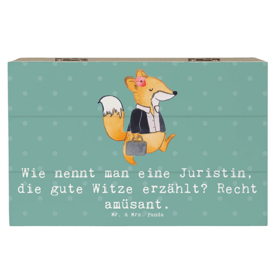 Entdecke die bezaubernde Holzkiste von Mr. & Mrs. Panda mit dem liebevoll gestalteten Motiv einer Juristin und dem witzigen Slogan: "Wie nennt man eine Juristin, die gute Witze erzählt? Recht amüsant." Diese besondere Schatzkiste bietet nicht nur einen sicheren Ort für all deine wertvollen Erinnerungen, sondern bringt auch eine Prise Humor in dein Zuhause.