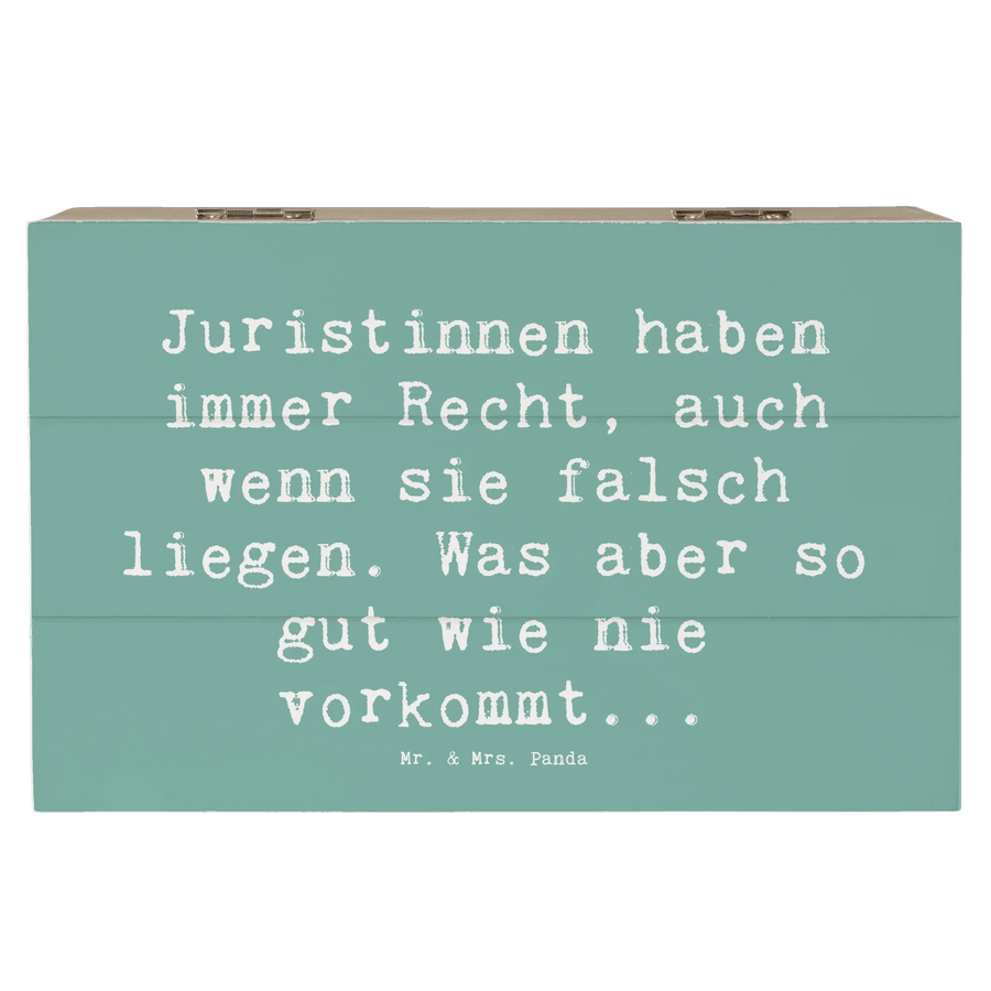 Entdecke die wunderschöne Holzkiste von Mr. & Mrs. Panda, perfekt für alle Juristinnen! Mit dem zauberhaften Spruch „Juristinnen haben immer Recht, auch wenn sie falsch liegen. Was aber so gut wie nie vorkommt...“ wird diese Kiste zum idealen Aufbewahrungsort für all deine wertvollen Erinnerungen.