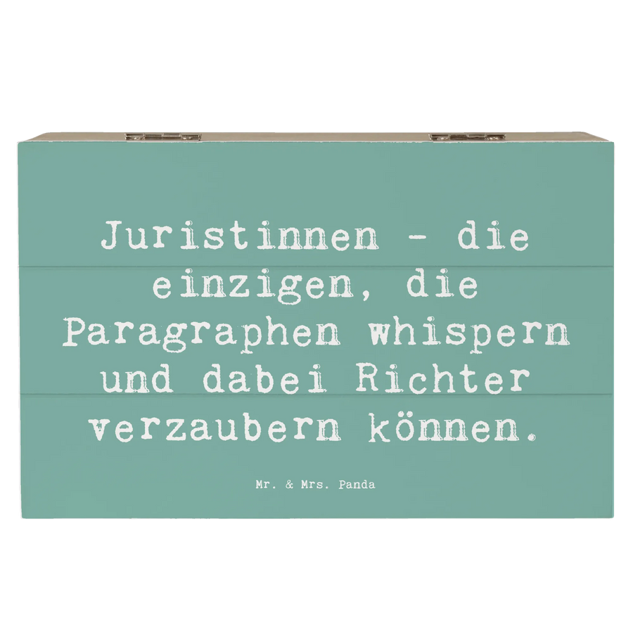 Die wunderschöne Holzkiste von Mr. & Mrs. Panda ist nicht nur ein praktischer Aufbewahrungsort für Deine wertvollen Erinnerungen, sie ist auch ein schickes Deko-Element. Mit dem liebevollen Motiv "Juristin - die einzigen, die Paragraphen whispern und dabei Richter verzaubern können" zieht sie alle Blicke auf sich! Egal ob für juristische Professionals, angehende Juristinnen oder als Geschenk für den Studienabschluss - diese Schatzkiste ist der ideale Begleiter für allerlei Schätze.