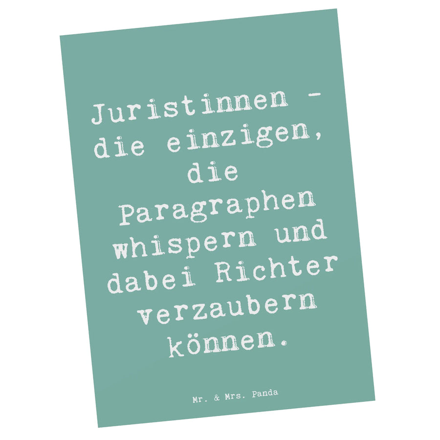 Diese niedliche Postkarte aus der Berufe-Kollektion von Mr. & Mrs. Panda ist ein kleines Kunstwerk: handgezeichnetes Aquarellmotiv von Mrs. Panda und der witzige Spruch „Juristinnen - die einzigen, die Paragraphen whispern und dabei Richter verzaubern können.“ bringen Humor und Wertschätzung auf den Punkt. Ideal als Geburtstagskarte, Einladungskarte oder Dankeskarte für Kolleginnen und Freundinnen.