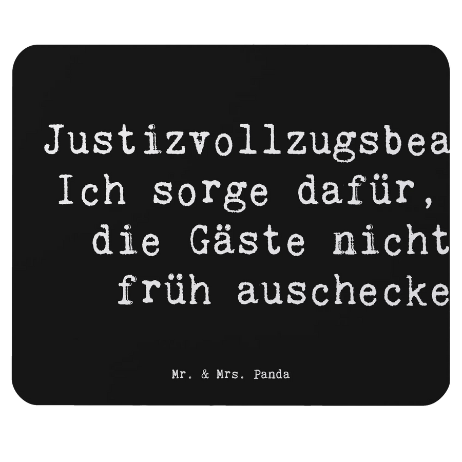 Das Mauspad "Justizvollzugsbeamter: Ich sorge dafür, dass die Gäste nicht zu früh auschecken!" aus der einzigartigen Berufe-Kollektion von Mr. & Mrs. Panda ist das perfekte Accessoire für jeden Justizvollzugsbeamten und eignet sich hervorragend als Geschenk zu besonderen Anlässen. Egal, ob für den Berufsabschied, ein Dienstjubiläum oder als kleine Aufmerksamkeit für einen geschätzten Kollegen – dieses Mauspad bringt ein Lächeln ins Büro und sorgt für eine angenehme Arbeitsatmosphäre.