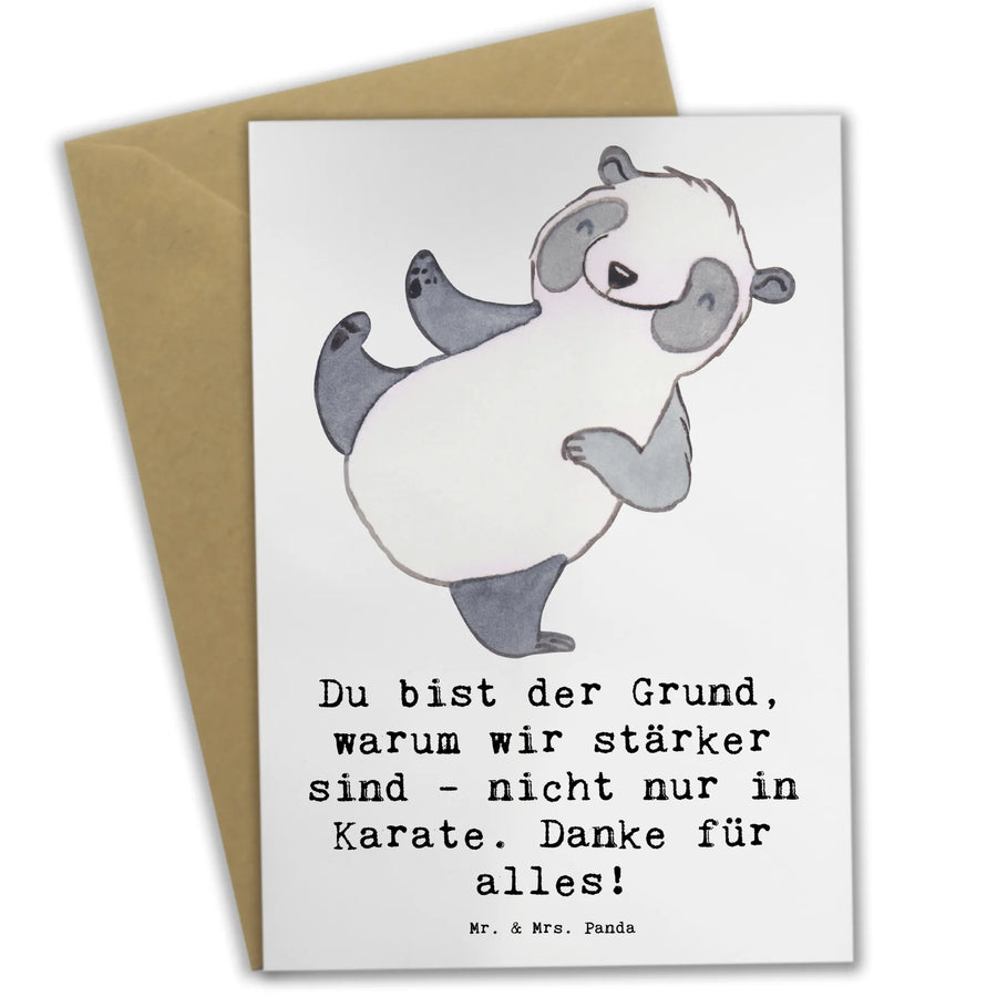 Du suchst ein besonderes Dankeschön für deine Karate-Trainerin? Unsere liebevoll illustrierte Grußkarte "Karate Trainerin" aus der Mr. & Mrs. Panda Kollektion Sportarten Trainerin trifft ins Herz. Mit dem warmen Spruch „Du bist der Grund, warum wir stärker sind - nicht nur in Karate. Danke für alles!" drückst du deine Dankbarkeit auf eine persönliche und stilvolle Weise aus. 😊