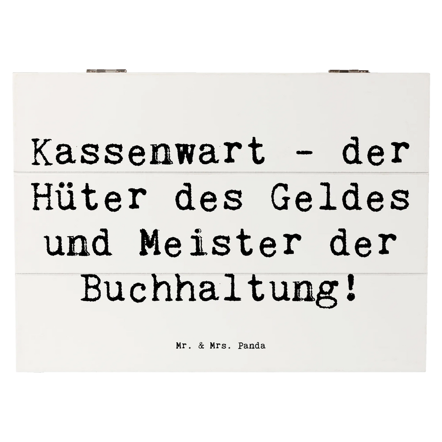 Entdecke die zauberhafte Holzkiste Kassenwart von Mr. & Mrs. Panda! Diese wunderschöne Holzkiste ist nicht nur ein fantastischer Aufbewahrungsort für all Deine Schätze, sondern auch ein liebevolles Geschenk für jeden, der im Bereich Buchhaltung oder Finanzen tätig ist. Mit ihrem charmanten Design und dem Spruch 'Kassenwart - der Hüter des Geldes und Meister der Buchhaltung!' spricht sie alle an, die mit Zahlen jonglieren und dabei stets den Überblick behalten müssen.