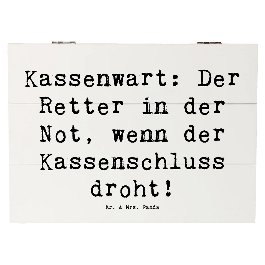 Die wunderschöne Holzkiste von Mr. & Mrs. Panda ist der perfekte Ort, um all deine tollen Erinnerungen zu bewahren. Mit dem liebevollen Design und dem Spruch 'Kassenwart: Der Retter in der Not, wenn der Kassenschluss droht!' aus der Kollektion Berufe ist sie nicht nur praktisch, sondern auch eine tolle Augenweide. Diese Kiste eignet sich hervorragend als Erinnerungskiste für wichtige Lebensereignisse wie Kommunion und Konfirmation oder als Platz für deine liebsten Fotos.