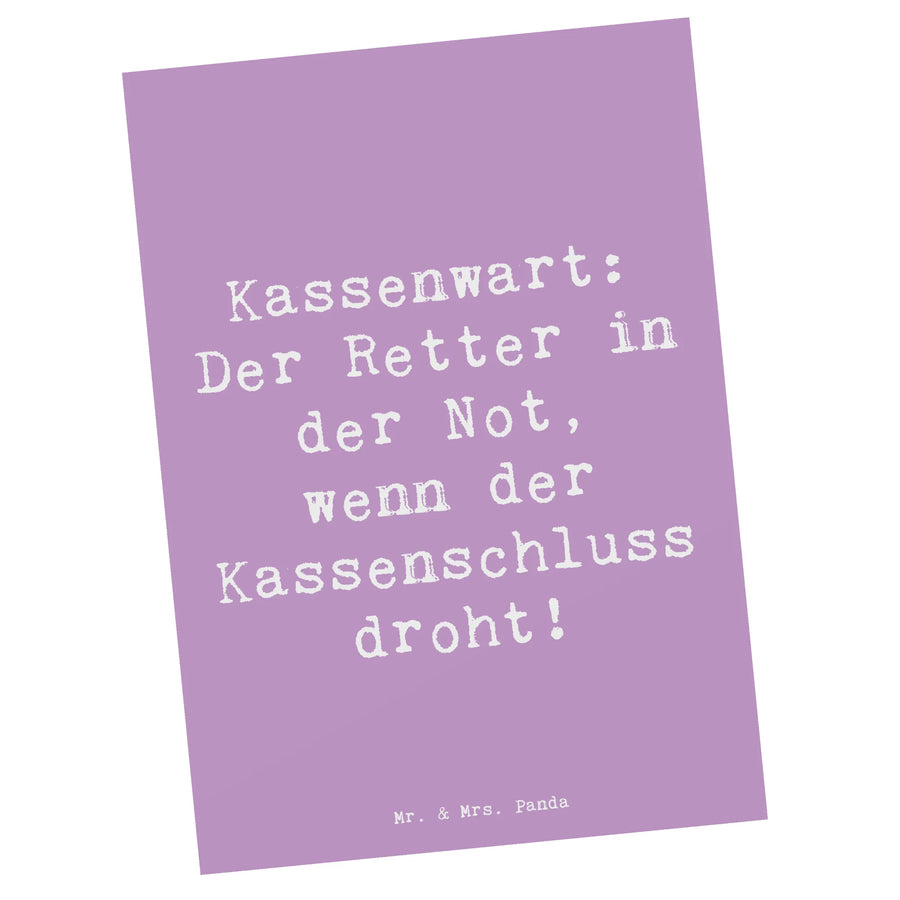 Postkarte Spruch Kassenwart: Der Retter in der Not, wenn der Kassenschluss droht! - Lavendeltraum