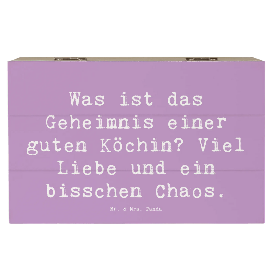Die wunderschöne Holzkiste von Mr. & Mrs. Panda ist das perfekte Geschenk für alle leidenschaftlichen Köchinnen und Köche! Mit dem charmanten Spruch "Was ist das Geheimnis einer guten Köchin? Viel Liebe und ein bisschen Chaos." ist diese Kiste nicht nur eine Aufbewahrungsbox, sondern auch ein Statement.