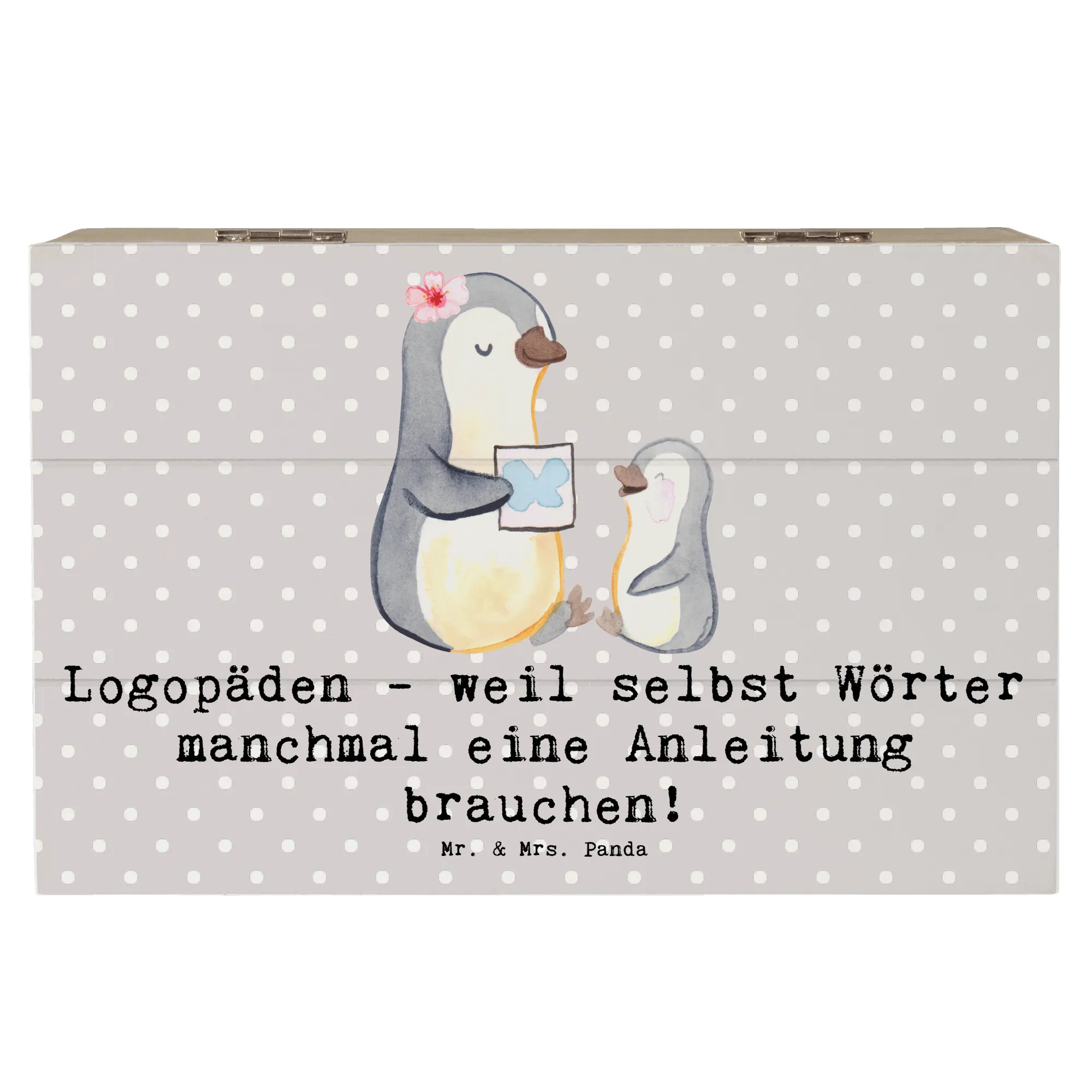 Der Bezug zur Berufe-Kollektion von Mr. & Mrs. Panda macht diese Kiste zu einer idealen Wahl, um die Leidenschaft zu feiern, die viele Logopäden für ihre Arbeit empfinden. Jeder schaut auf seine Weise nach Möglichkeiten, um in einem so wichtigen Beruf Unterstützung zu finden. Die Holzkiste ist daher nicht nur ein praktisches Geschenk, sondern auch eine besondere Geste der Wertschätzung.