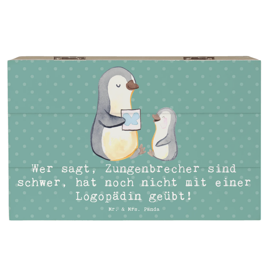 Die wunderschöne Holzkiste von Mr. & Mrs. Panda mit dem Motiv "Logopädin" ist der perfekte Begleiter für alle, die die Faszination des Sprechens und der Sprache lieben!