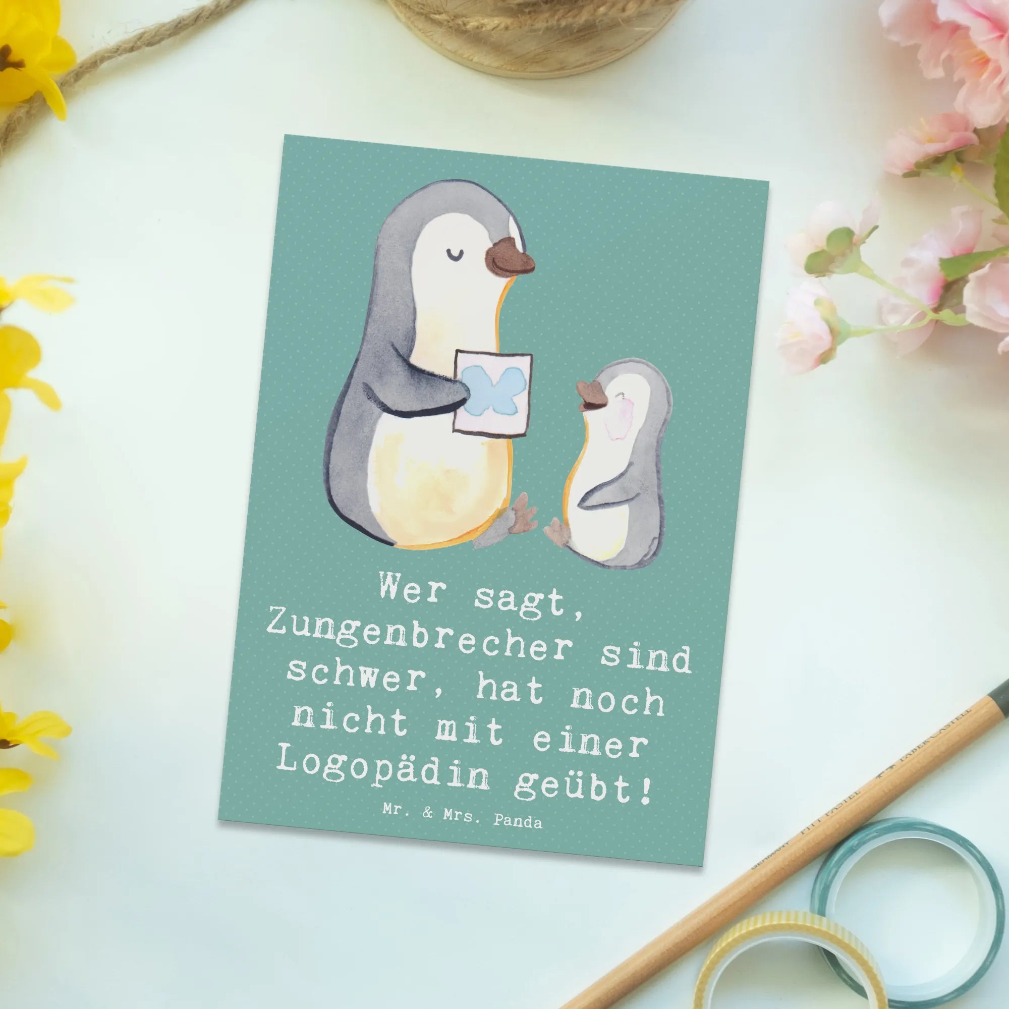 Entdecke unsere einzigartige Postkarte "Logopädin" aus der berührenden Berufe Kollektion von Mr. & Mrs. Panda! Diese Karte ist nicht nur hübsch anzusehen, sondern auch perfekt, um deine Wertschätzung für die Logopäden in deinem Leben auszudrücken. Mit dem witzigen Spruch: "Wer sagt, Zungenbrecher sind schwer, hat noch nicht mit einer Logopädin geübt!", bringt sie garantiert ein Lächeln auf die Lippen!