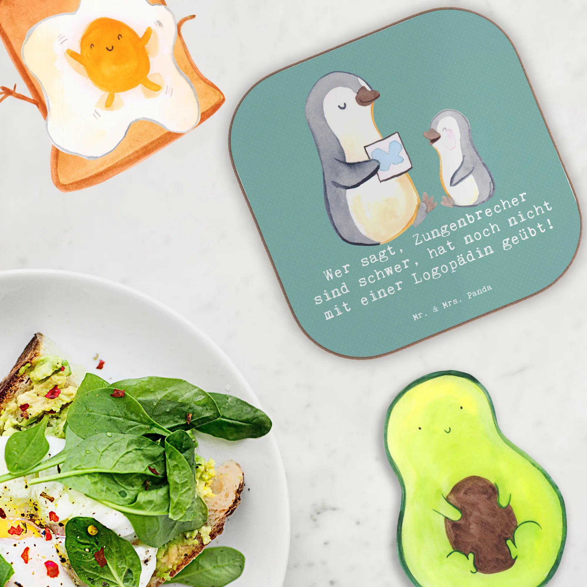 Mit einer Größe von 100 mm x 100 mm passt unser Untersetzer perfekt sowohl für Gläser als auch für Tassen. Ein stilvolles Design und eine liebevolle Gestaltung zeichnet die Produkte von Mr. & Mrs. Panda aus. Dieser Untersetzer ist nicht nur nützlich, sondern als Teil der Berufe-Kollektion auch eine liebevolle Hommage an alle, die im Bereich Kommunikation und Sprachtherapie arbeiten.