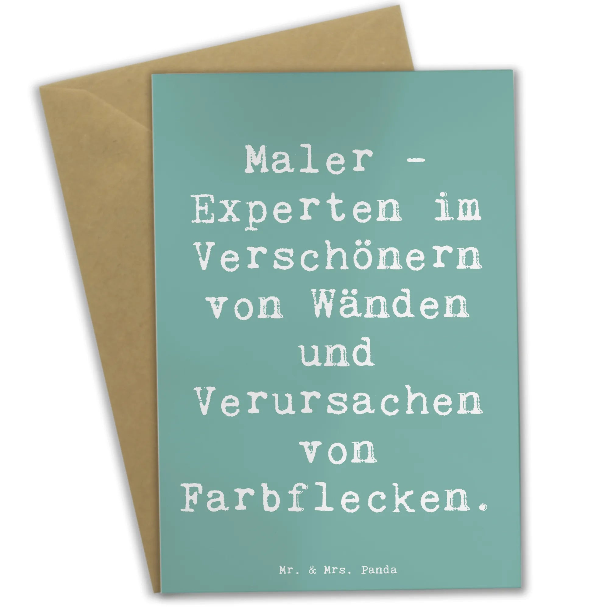 Die Grußkarte "Maler" aus der Kollektion Berufe von Mr. & Mrs. Panda ist das perfekte Geschenk für alle, die in der kreativen Welt der Malerei arbeiten oder diese Leidenschaft für Kunst und Gestaltung haben.