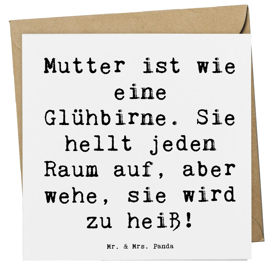 Die hochwertig verarbeitete Karte misst 140 mm x 140 mm und besticht durch ihr edles Design. Auf der Vorderseite findest du den charmanten Spruch: "Mutter ist wie eine Glühbirne. Sie hellt jeden Raum auf, aber wehe, sie wird zu heiß!" Dieser liebevolle Spruch bringt die besondere Beziehung zwischen Mutter und Kind perfekt auf den Punkt.