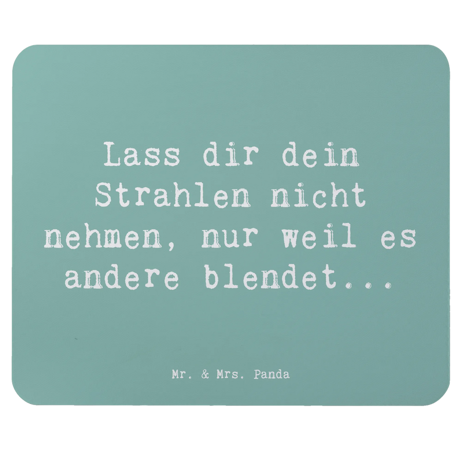 Der Spruch "Lass dir dein Strahlen nicht nehmen, nur weil es andere blendet..." macht dieses Mauspad zu einer inspirierenden Erinnerung, um Selbstvertrauen und Motivation zu stärken. Es ist ideal für Studenten, Berufstätige oder kreative Köpfe, die ihren Platz im Arbeitszimmer oder im Büro gerne voller positiver Vibes gestalten.