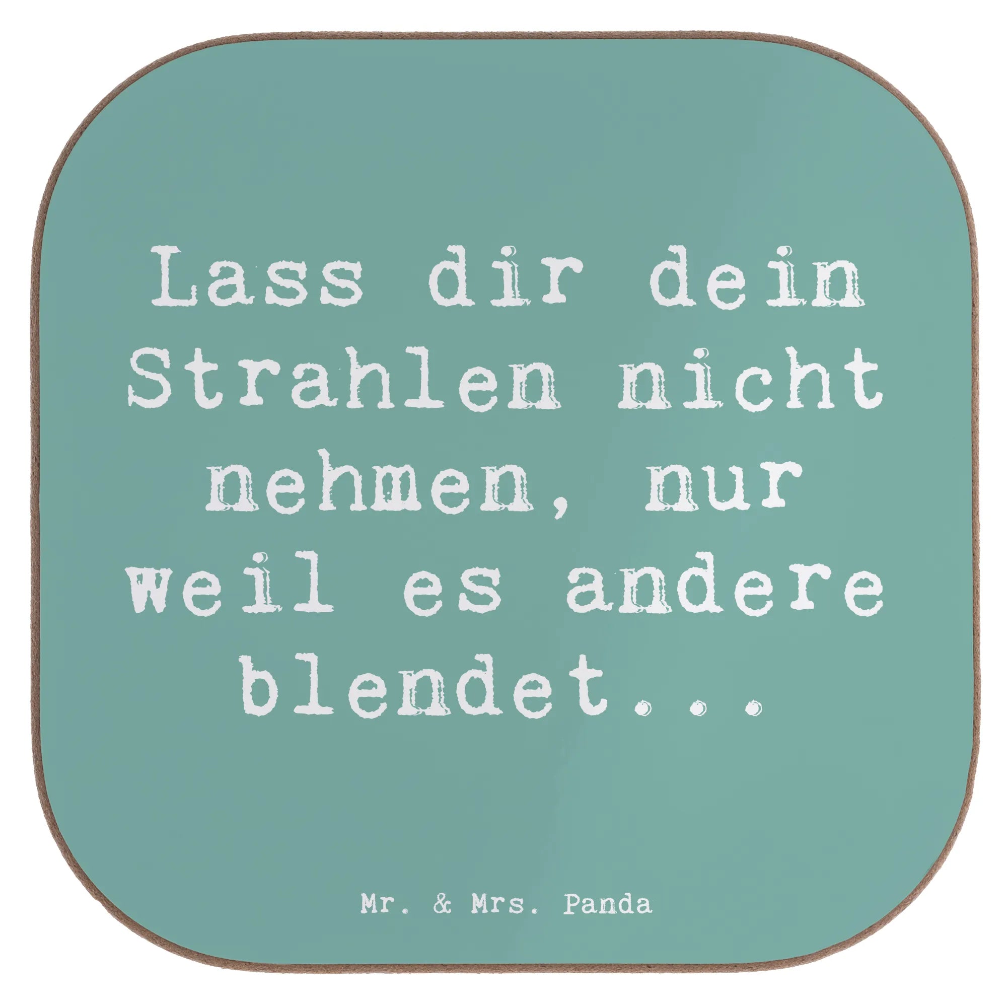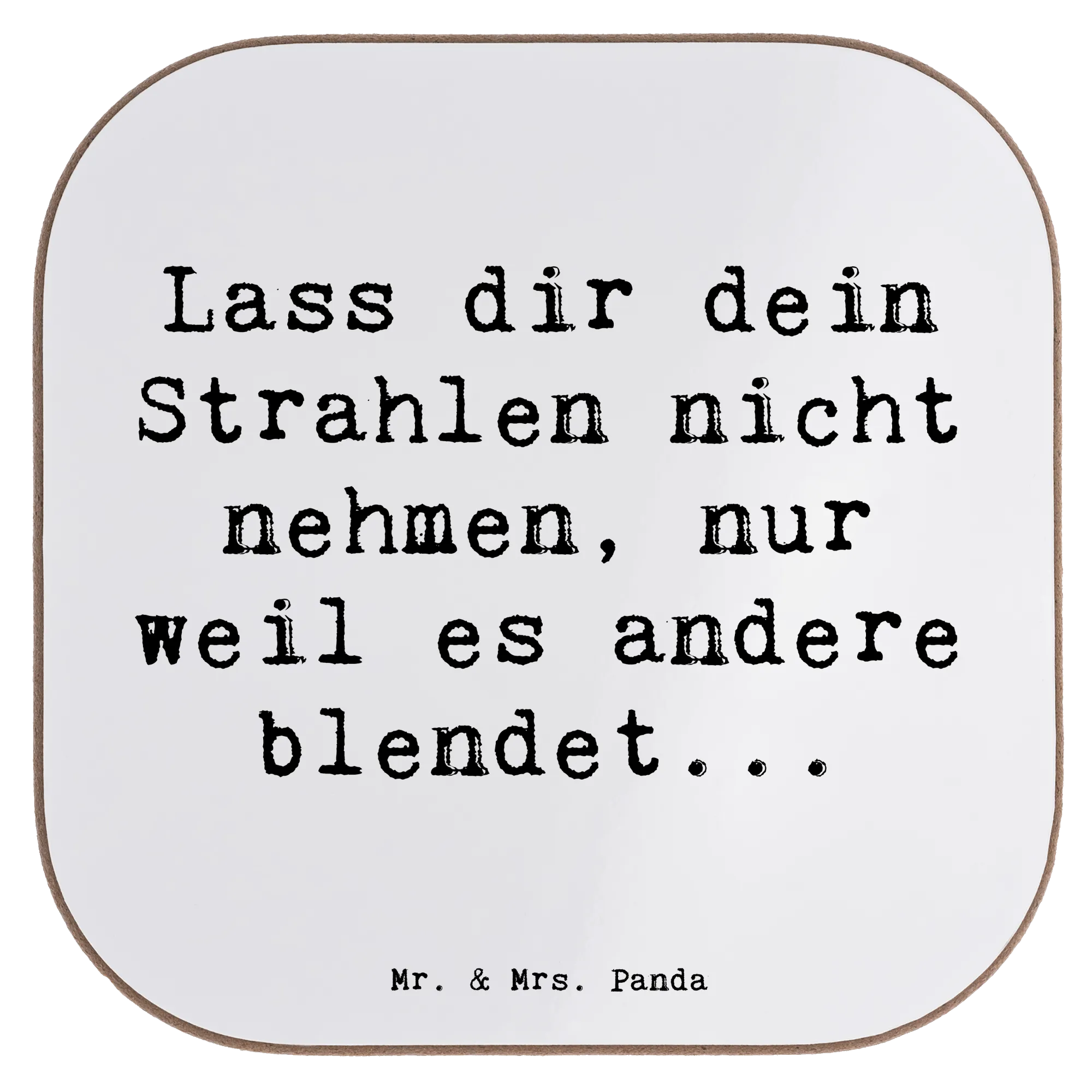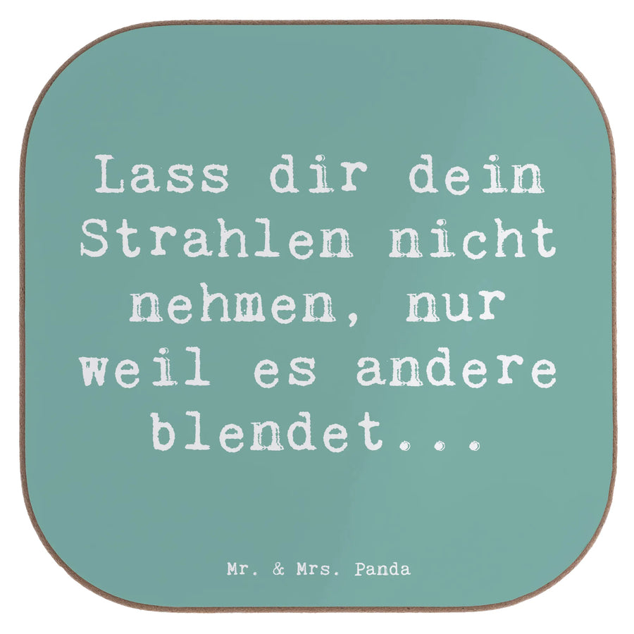 Entdecke den perfekten Untersetzer von Mr. & Mrs. Panda – ein wunderschöner quadratischer Untersetzer mit dem inspirierenden Spruch "Lass dir dein Strahlen nicht nehmen, nur weil es andere blendet..."! Dieser Untersetzer aus hochwertigem Hartfaser-Material schützt deinen Tisch vor unschönen Abdrücken, Kratzern und extremen Temperaturen. Mit seinen Maßen von 100 mm x 100 mm und einer Dicke von 5 mm ist er das ideale Accessoire für deinen Ess- und Couchtisch.