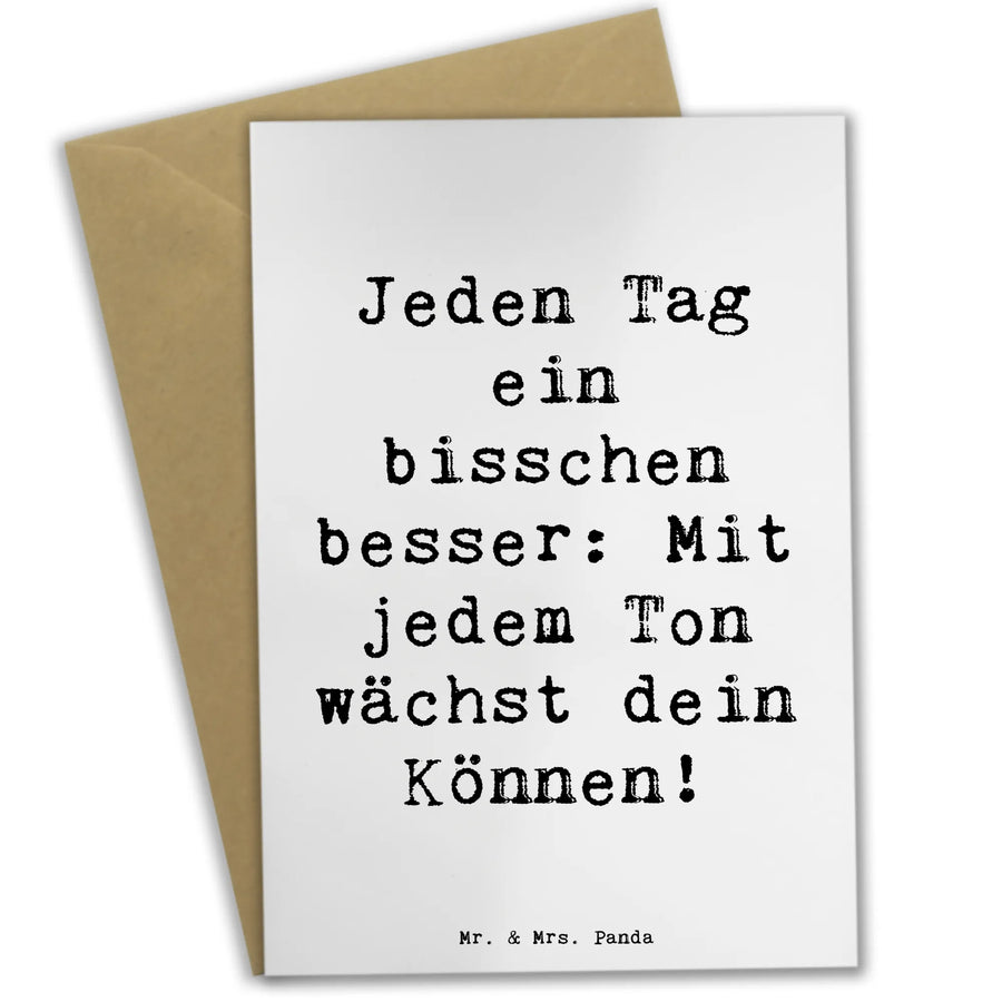 Der inspirierende Spruch 'Jeden Tag ein bisschen besser: Mit jedem Ton wächst dein Können!' wird sicher jeden ansprechen, der sich auf diese spannende Reise begibt. Die hochwertige Karte ist aus edlem 300 Gramm Karton gefertigt und hat eine hochglänzend veredelte Vorderseite, die sie besonders edel wirken lässt. Die matte Innenseite ist perfekt für persönliche Botschaften und Glückwünsche.