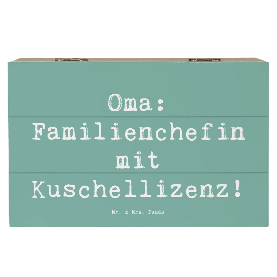 Die wunderschöne Holzkiste von Mr. & Mrs. Panda ist das perfekte Geschenk für Oma! Diese besondere Kiste, bedruckt mit dem liebevollen Spruch "Oma: Familienchefin mit Kuschellizenz!", bietet viel mehr als nur Stauraum.
