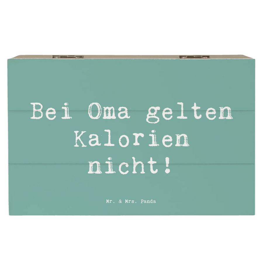 Die wunderschöne Holzkiste von Mr. & Mrs. Panda ist nicht nur ein praktisches Aufbewahrungselement, sondern auch ein liebevolles Geschenk für alle Omas. Mit dem charmanten Motiv "Bei Oma gelten Kalorien nicht!" ist diese Kiste ideal, um all die kleinen Schätze und Erinnerungen zu bewahren, die Deine Oma über all die Jahre gesammelt hat.