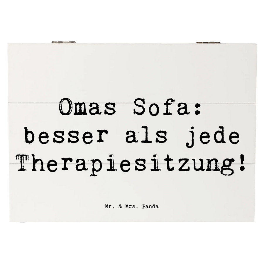 Die Holzkiste von Mr. & Mrs. Panda ist das perfekte Geschenk für die Oma! Egal ob zu ihrem Geburtstag, zu Weihnachten oder einfach als kleines Dankeschön – diese wunderschöne Kiste mit dem liebevollen Spruch "Omas Sofa: besser als jede Therapiesitzung!" wird garantiert ihr Herz erwärmen. Diese besondere Erinnerungskiste ist nicht nur ein wunderschöner Aufbewahrungsort für wertvolle Schätze, sondern auch eine herzerwärmende Geste, die zeigt, wie sehr du sie schätzt.