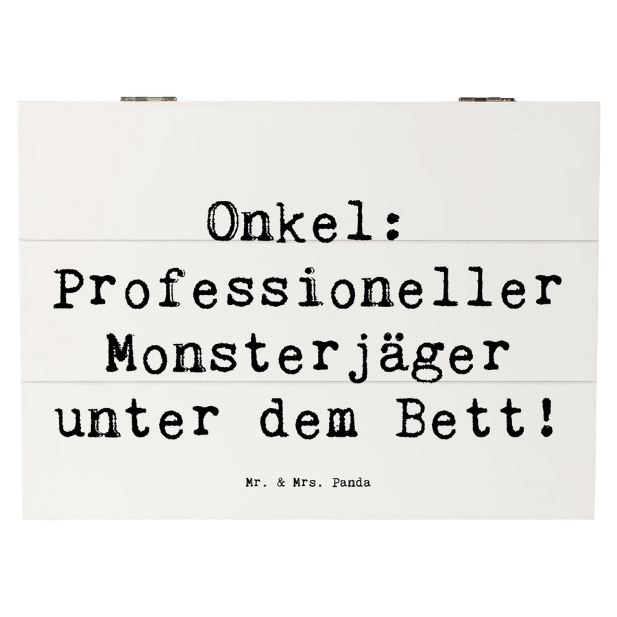 Entdecke die zauberhafte Holzkiste von Mr. & Mrs. Panda, die sich perfekt als Geschenk für Deinen Onkel eignet! Diese wunderschöne Kiste, bedruckt mit dem Spruch 'Onkel: Professioneller Monsterjäger unter dem Bett!', ist mehr als nur eine Aufbewahrungsbox. Sie stellt einen besonderen Ort dar, um wertvolle Erinnerungen, schöne Fotos oder kleine Schätze aufzubewahren.
