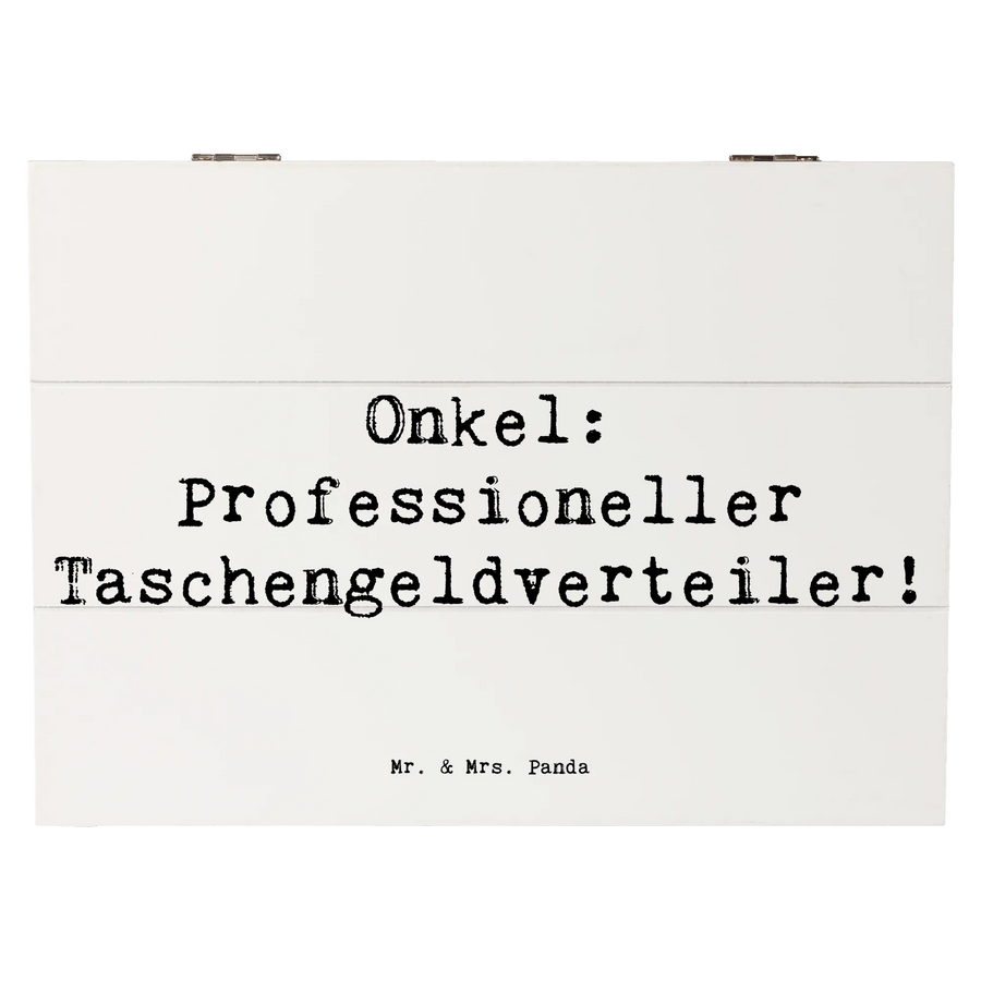 Die wunderschöne Holzkiste von Mr. & Mrs. Panda ist der perfekte Aufbewahrungsort für all Deine wertvollen Erinnerungen. Mit dem schlichten, aber eindrucksvollen Motiv "Onkel: Professioneller Taschengeldverteiler!" überzeugt diese Kiste in jeder Hinsicht.