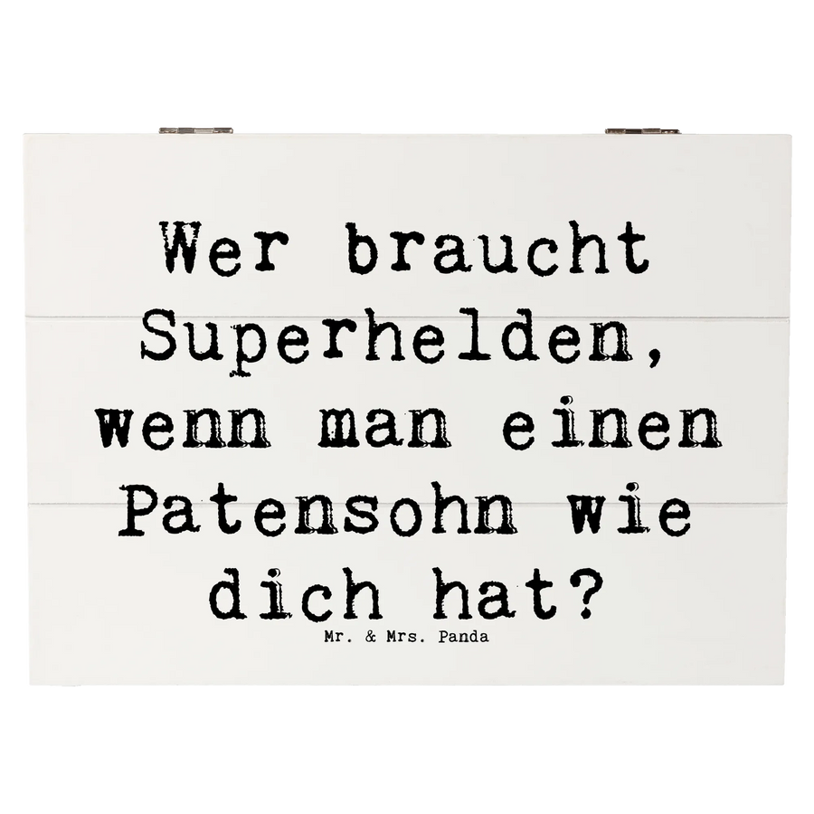 Die wunderschöne Holzkiste von Mr. & Mrs. Panda ist das perfekte Geschenk für deinen Patensohn. Sie fällt nicht nur durch ihr charmantes Design auf, sondern auch durch ihre Funktionalität. Mit dem Spruch 'Wer braucht Superhelden, wenn man einen Patensohn wie dich hat?' spricht sie die ganz besondere Beziehung zwischen Paten und Patenkindern an und schafft Erinnerungen, die ein Leben lang halten.