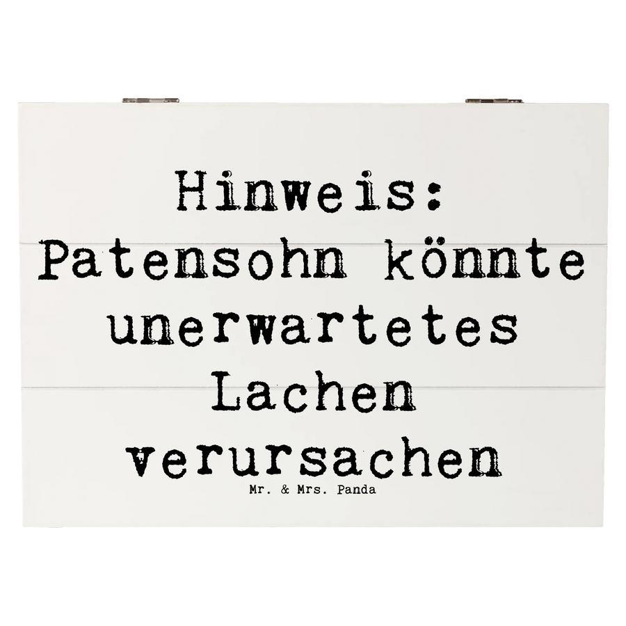 Die wunderschöne Holzkiste von Mr. & Mrs. Panda ist das perfekte Geschenk für deinen Patensohn! 🎁 Mit ihrem zauberhaften Motiv und dem Sticker "Hinweis: Patensohn könnte unerwartetes Lachen verursachen" bringt sie garantiert ein Lächeln auf das Gesicht des Beschenkten.